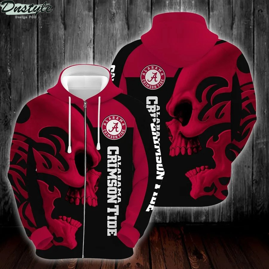 NCAA Alabama Crimson Tide 3D Skull Zip Up Hoodie
