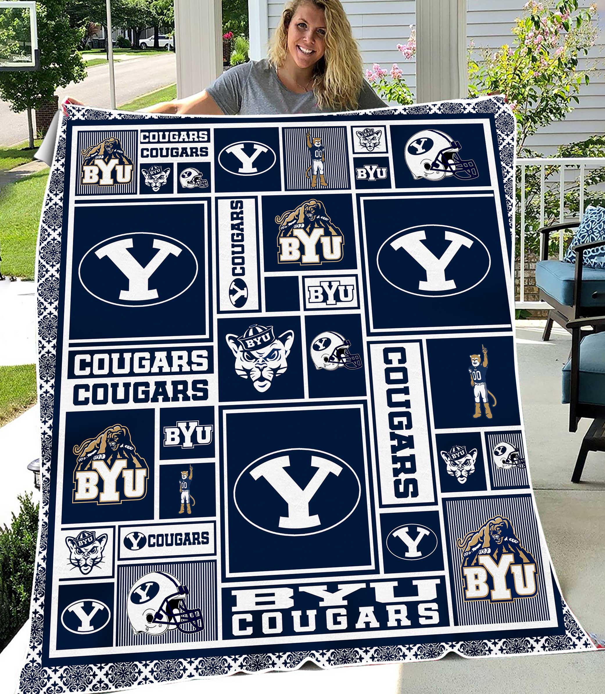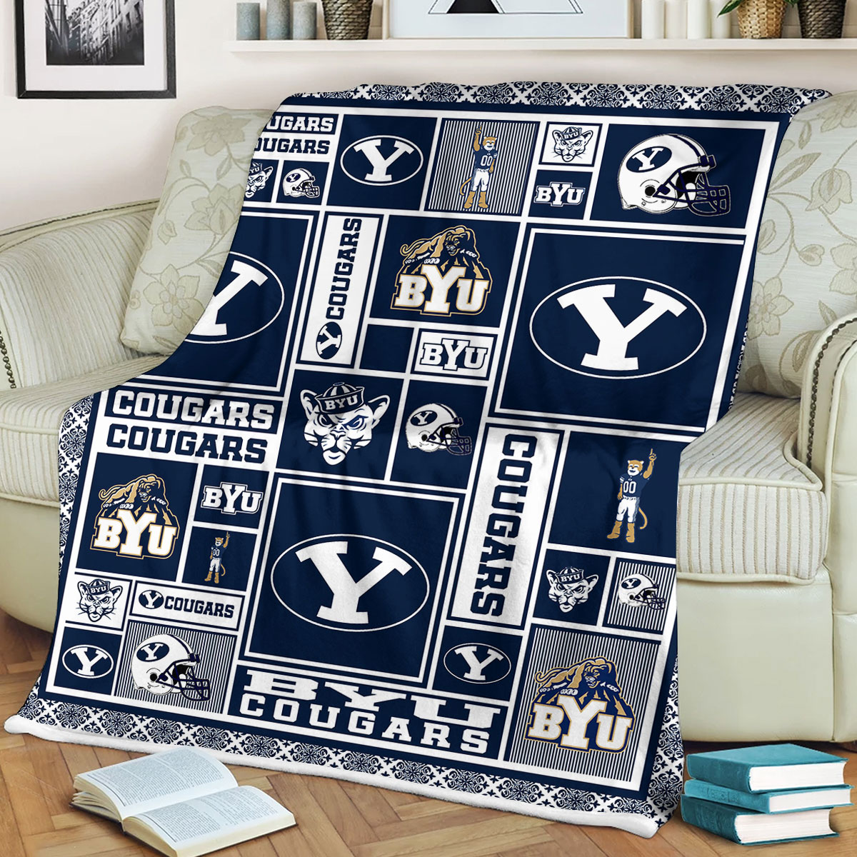 NCAA Byu Cougars Sherpa Fleece Blanket Gifts for University Football Fan