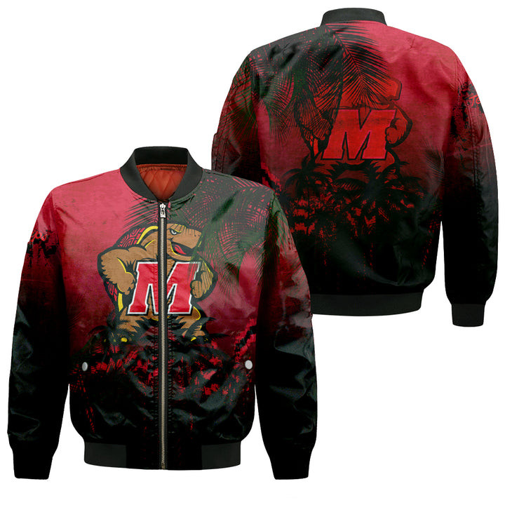 NCAA Maryland Terrapins Coconut Trees Red Bomber Jacket V17