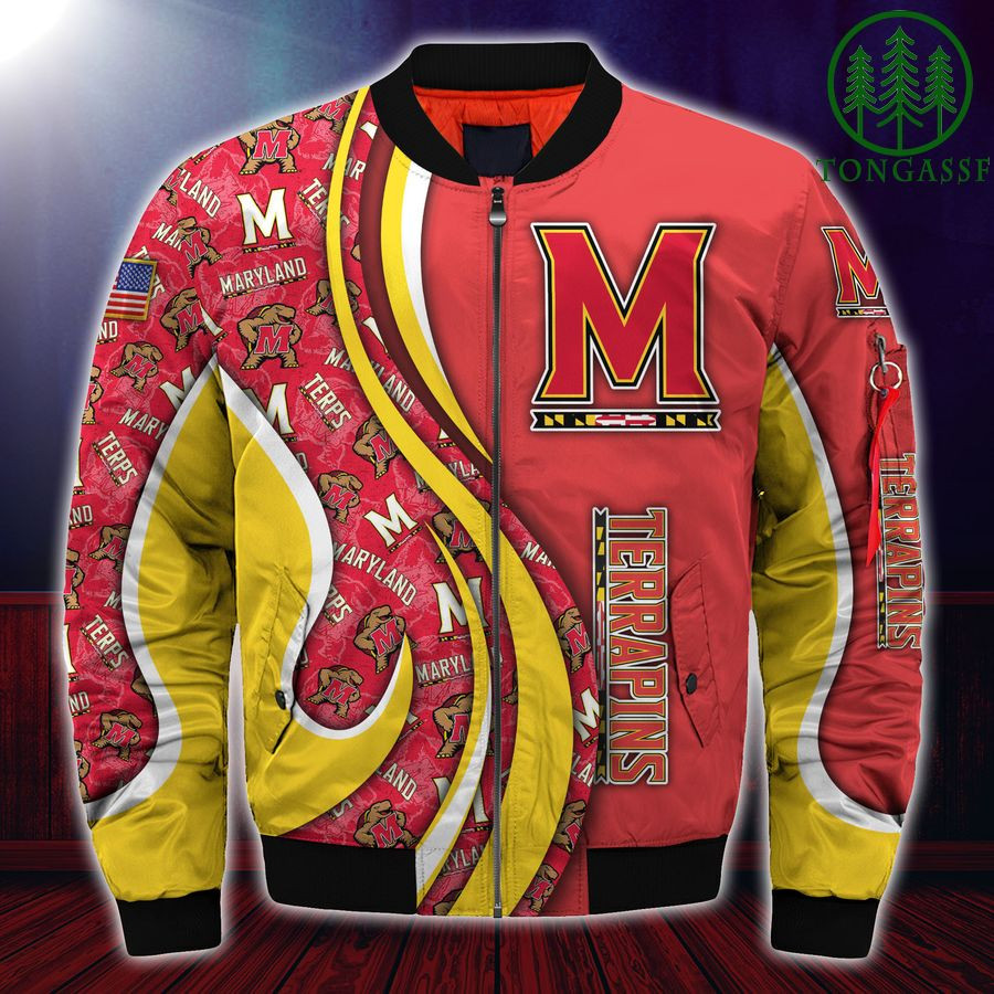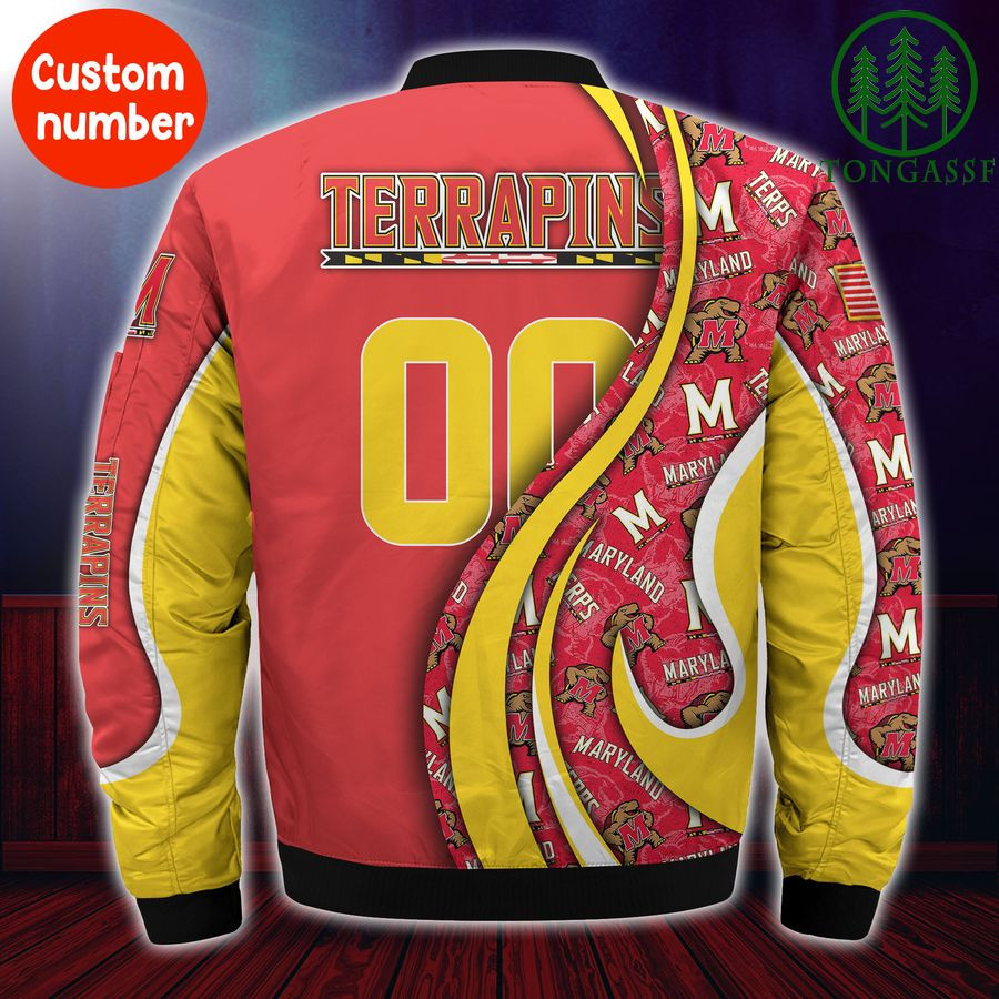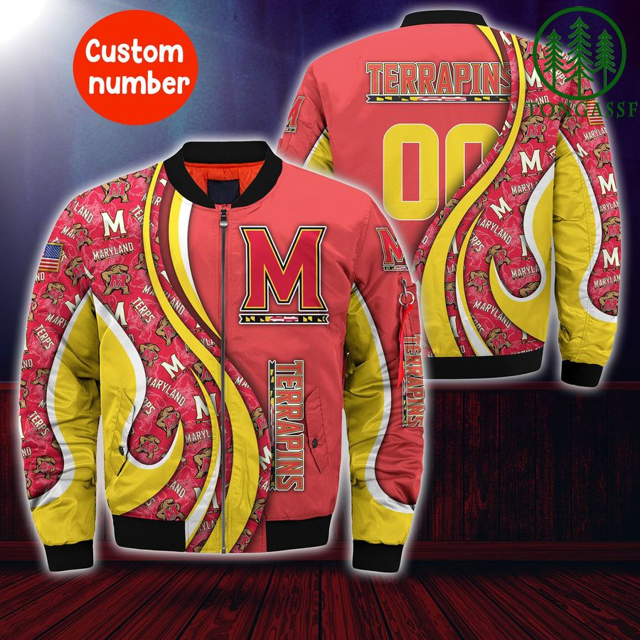 NCAA Maryland Terrapins Custom Number Red Yellow Bomber Jacket