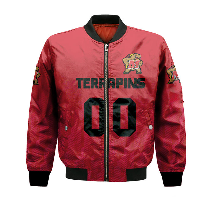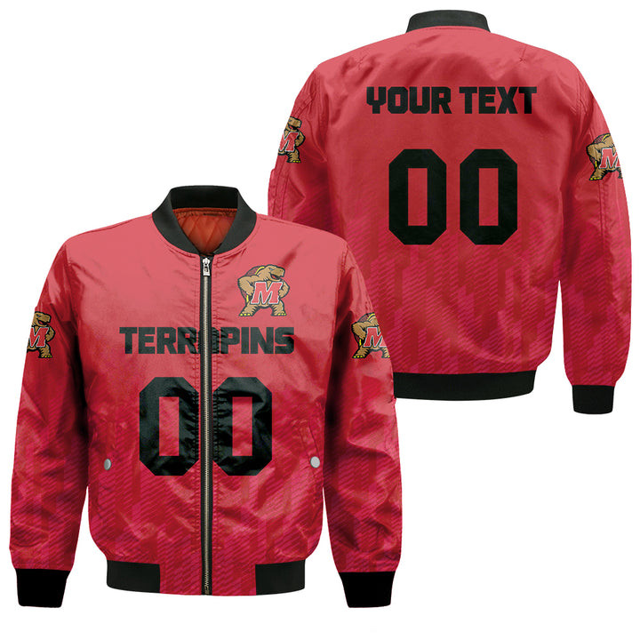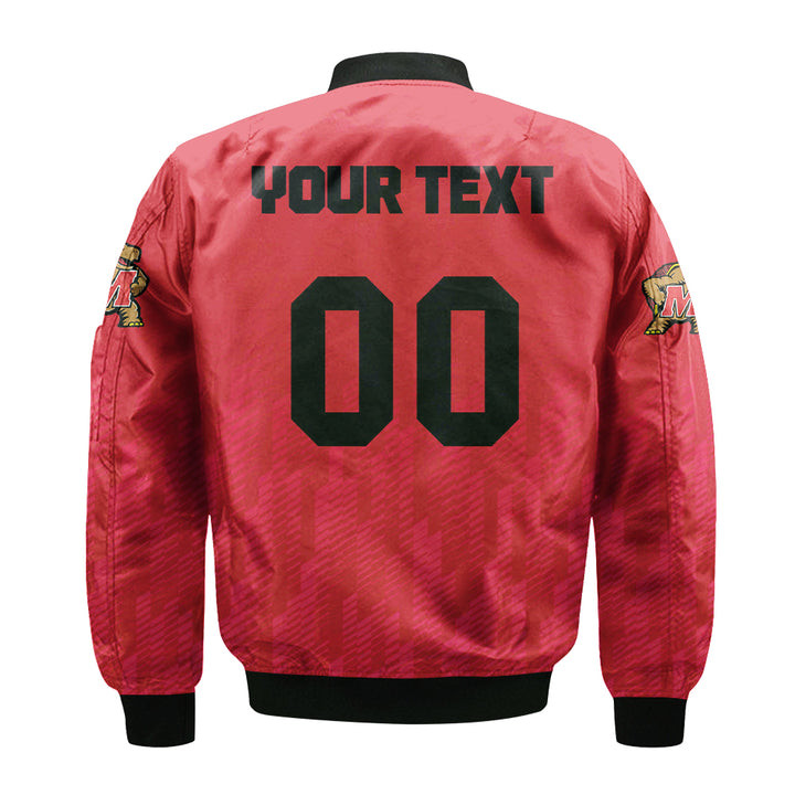NCAA Maryland Terrapins Custom Text Number Red Bomber Jacket V14