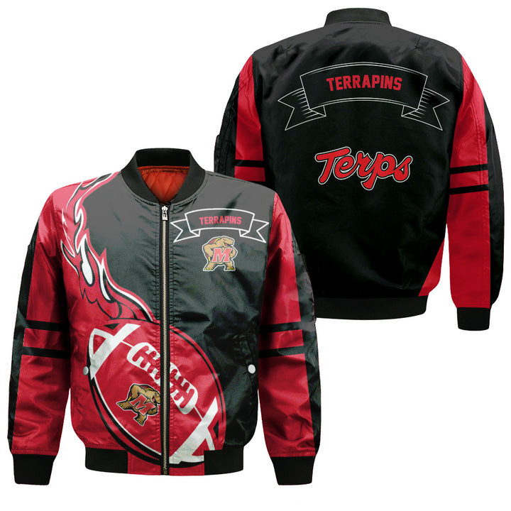 NCAA Maryland Terrapins Red Ball Black Bomber Jacket