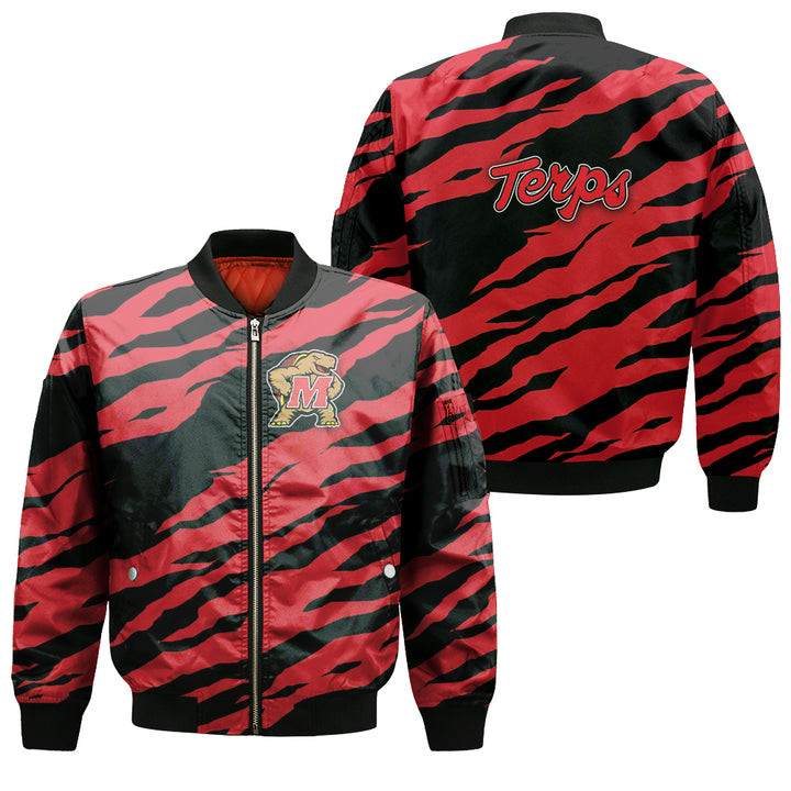 NCAA Maryland Terrapins Red Black Bomber Jacket V13