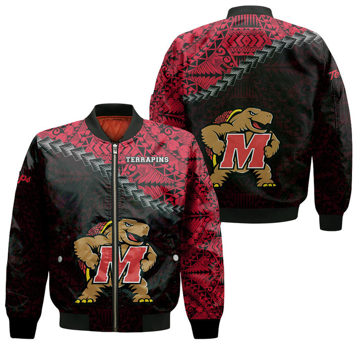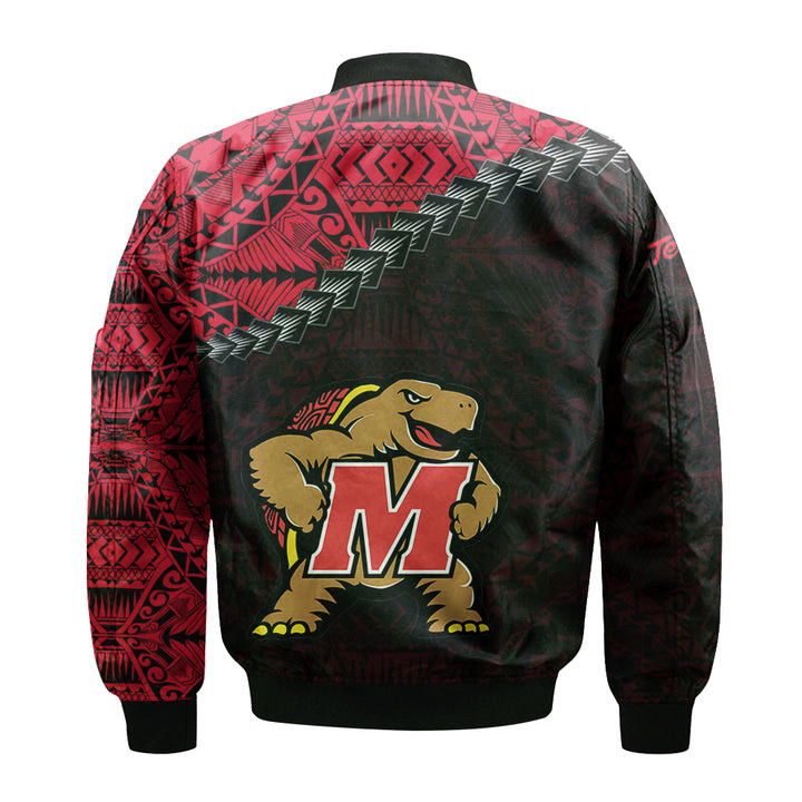 NCAA Maryland Terrapins Red Black Polynesian Bomber Jacket V2