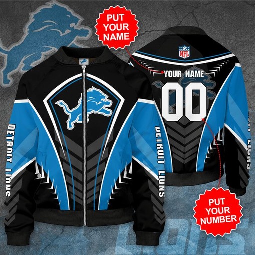 NFL Detroit Lions Custom Name Number Black Bomber Jacket