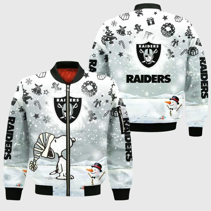 NFL Las Vegas Raiders Snoopy Silver Christmas Bomber Jacket