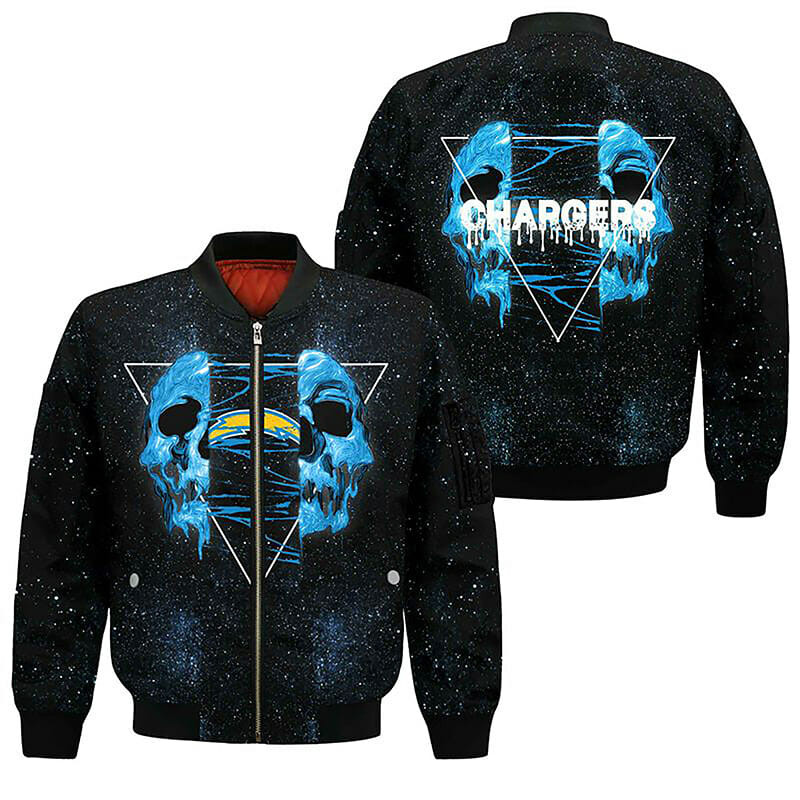 NFL Los Angeles Chargers Black Blue Skull Bomber Jacket V10