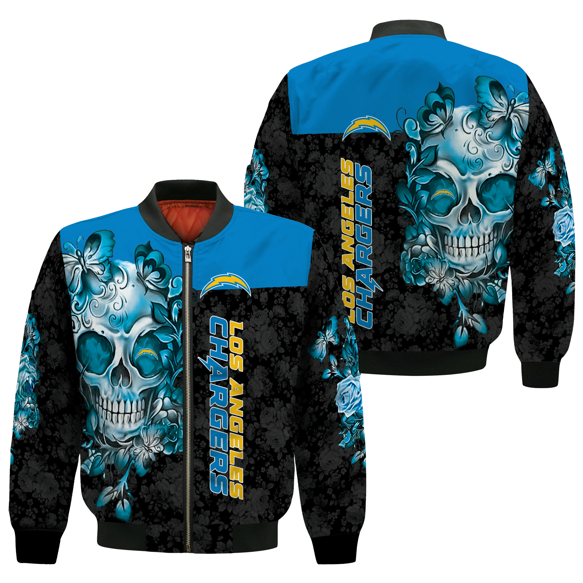 NFL Los Angeles Chargers Black Blue Skull Bomber Jacket V9