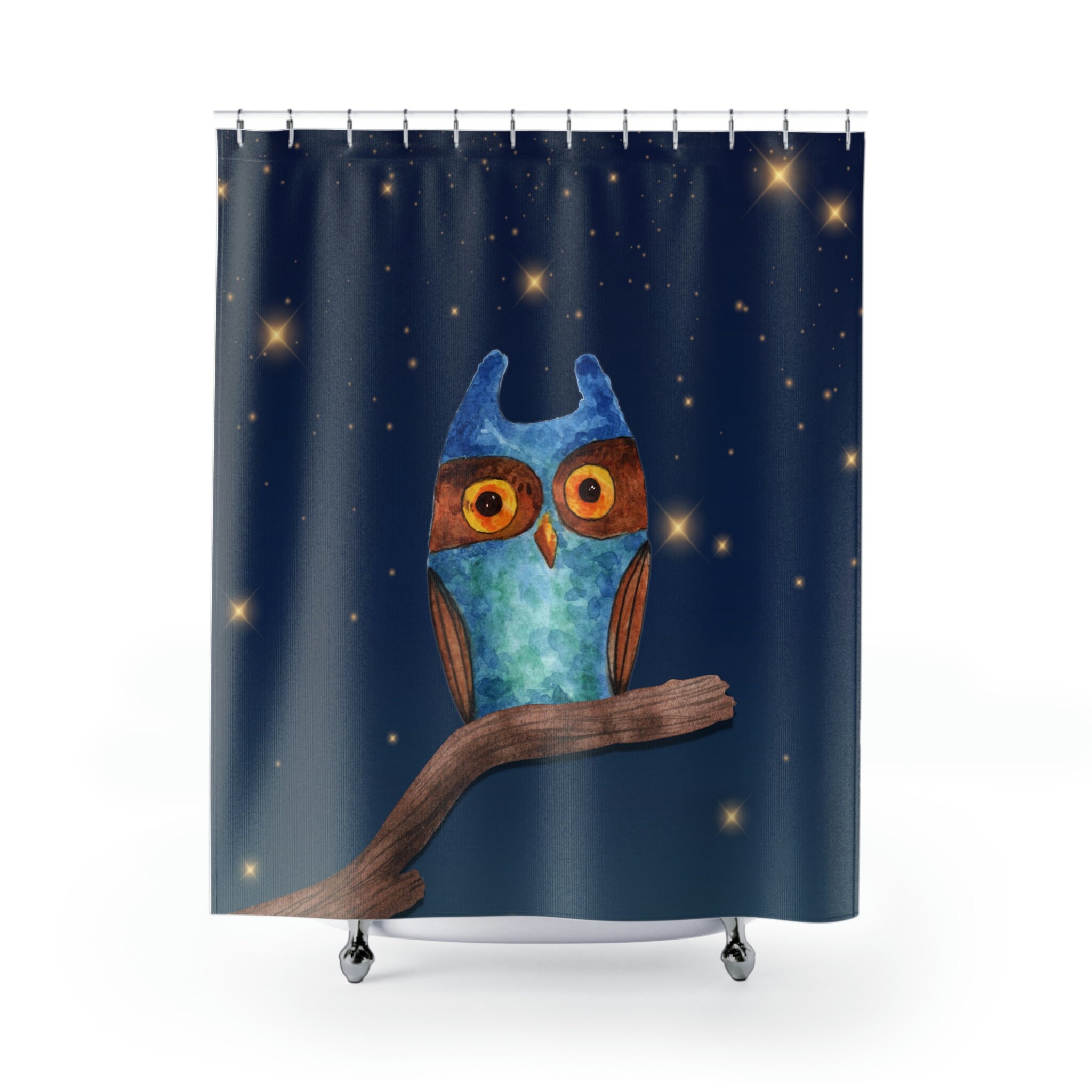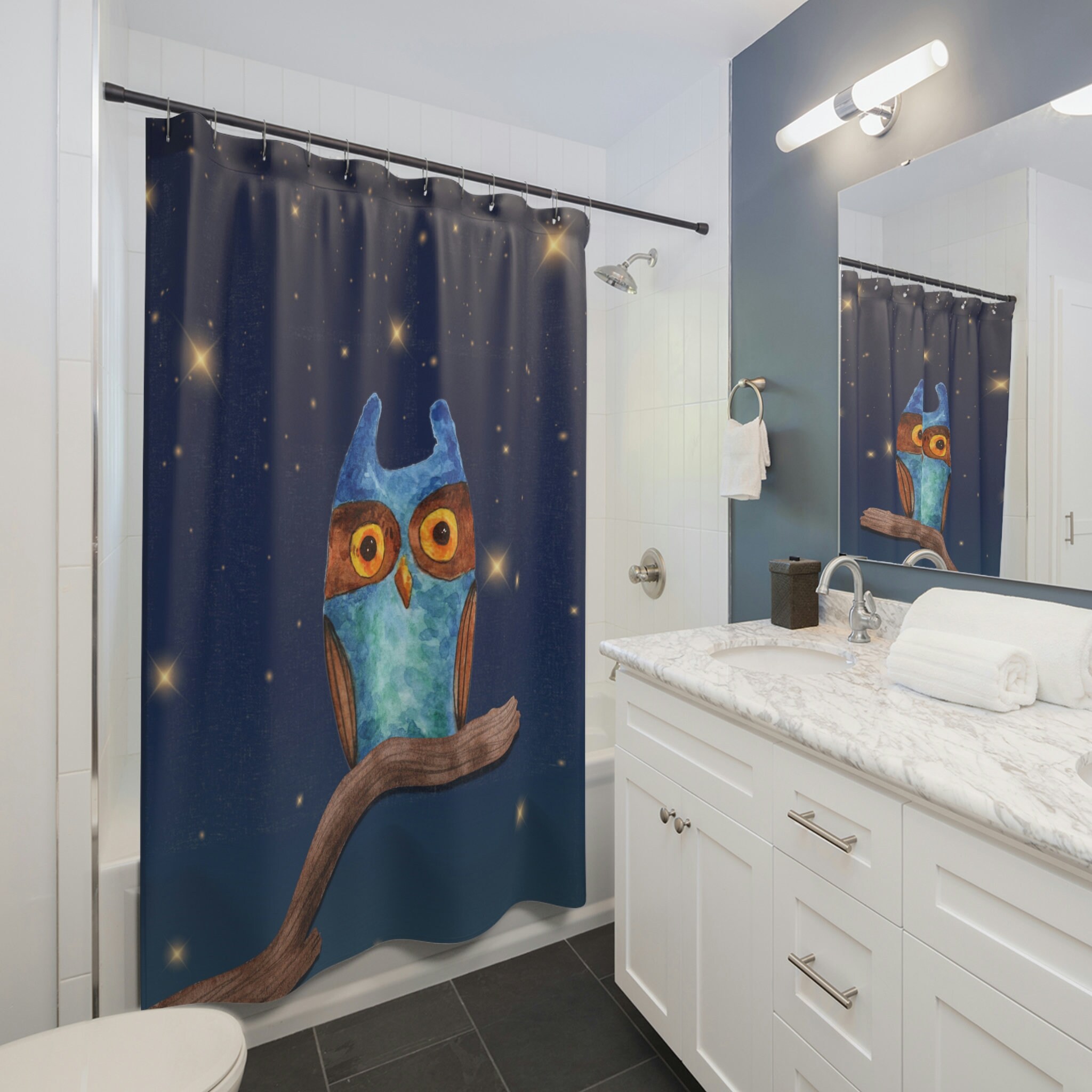 Night Sky Wise Owl Shower Curtain Tree Branch Bathroom Decor