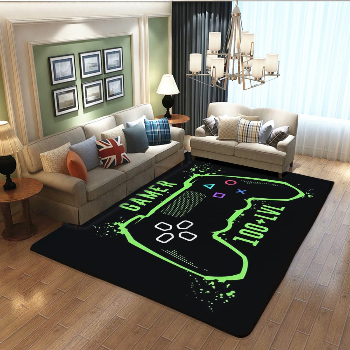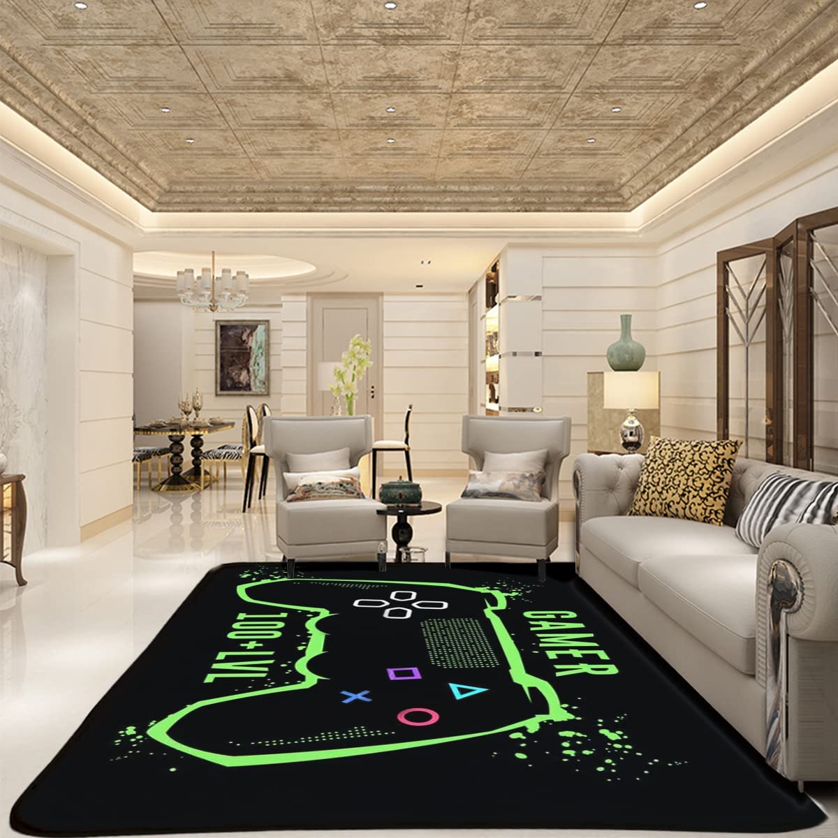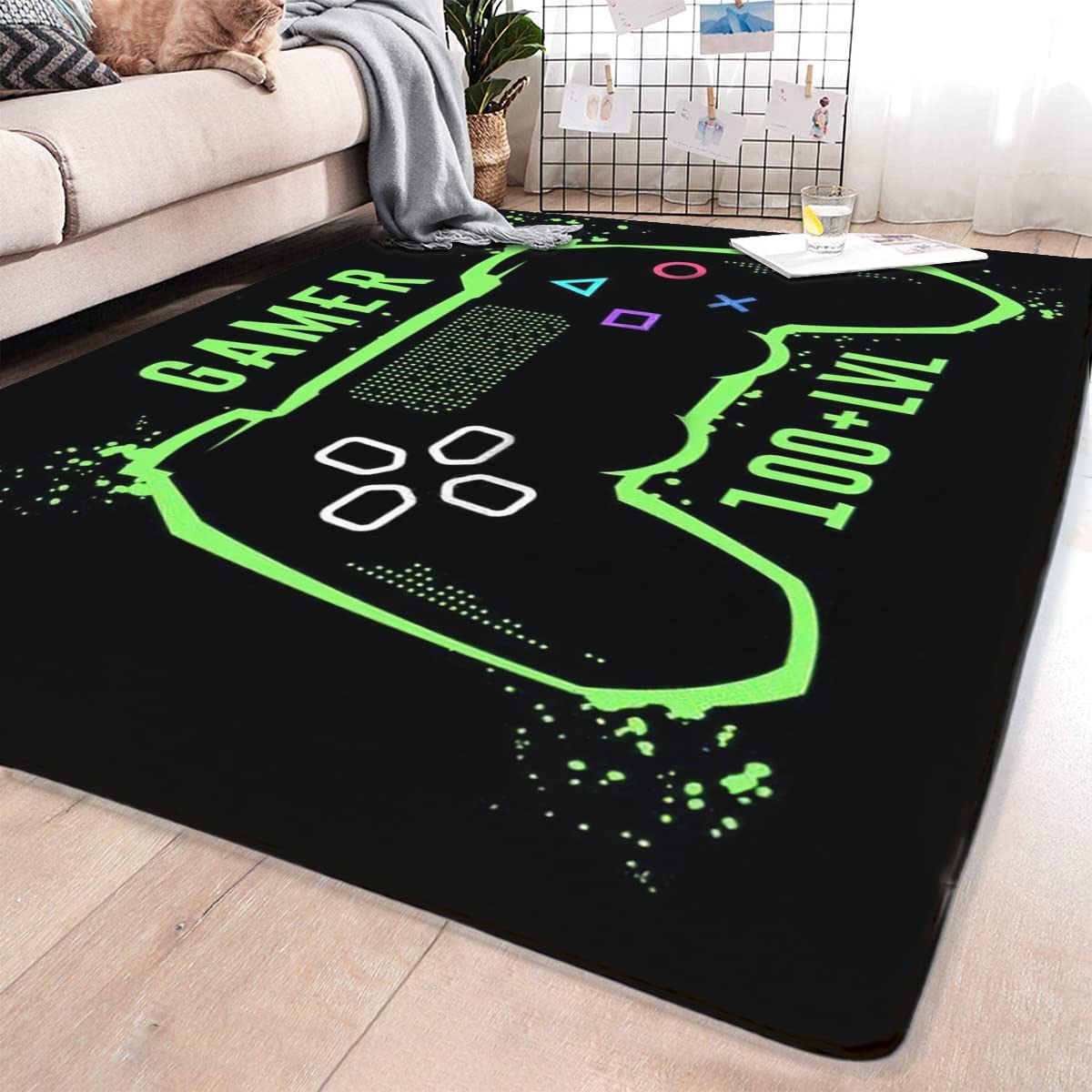 Non-Slip Living Room Mat and Gamer Doormat with Controller Player Rugs for Boys Bedroom