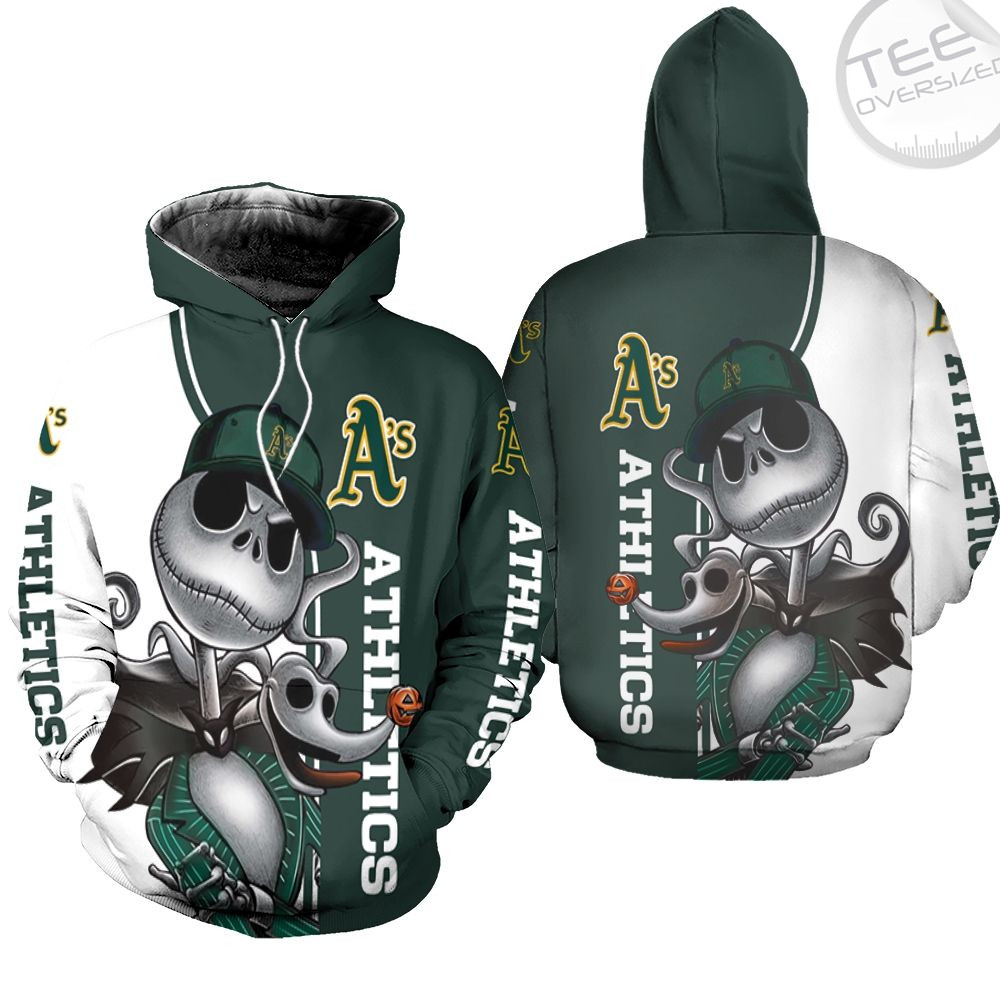 Oakland Athletics Jack Skellington And Zero 3D Hoodie