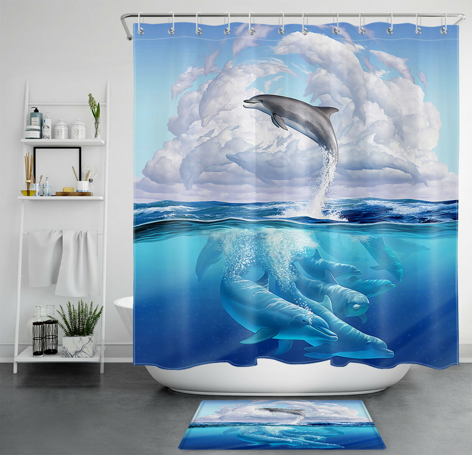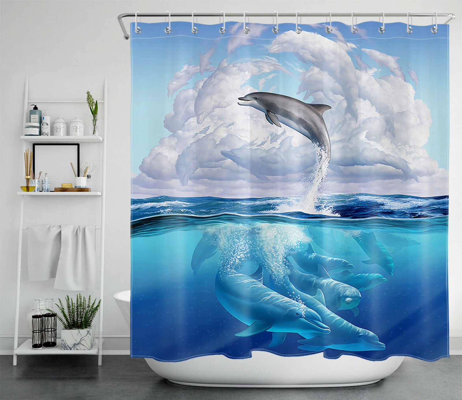 Ocean Abstract White Cloud Dolphin Shower Curtain for a Dreamy and Serene Bathroom Accessory