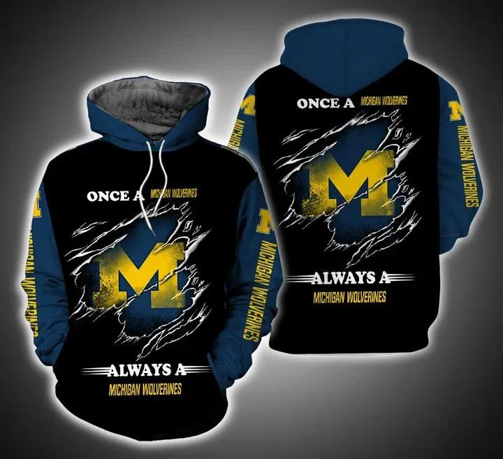 Once A Michigan Wolverines Always a Michigan Wolverines 3D All Over Print Zip Hoodie Gifts For NCAA Fans