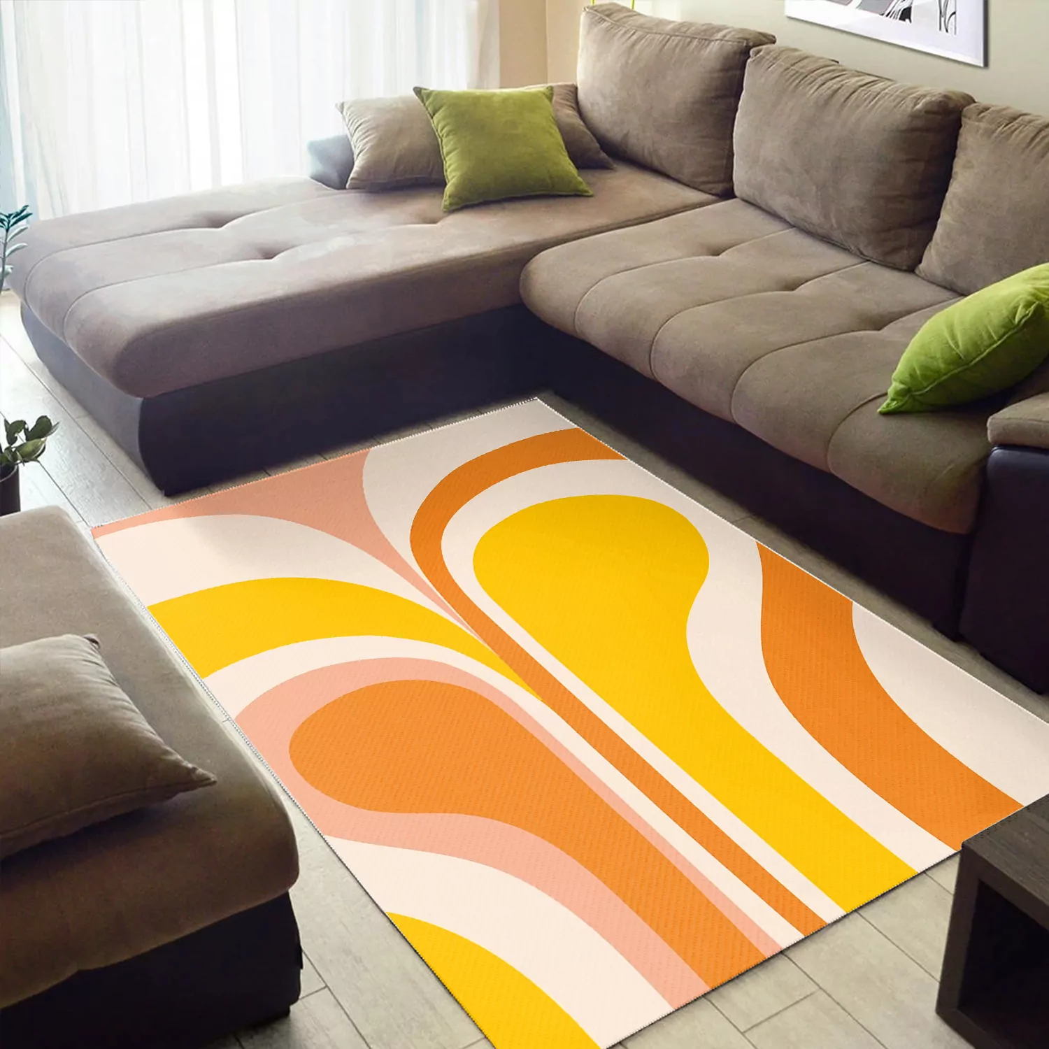 Orange and Yellow 70s Area Rug Retro Groovy Abstract Design in Peach
