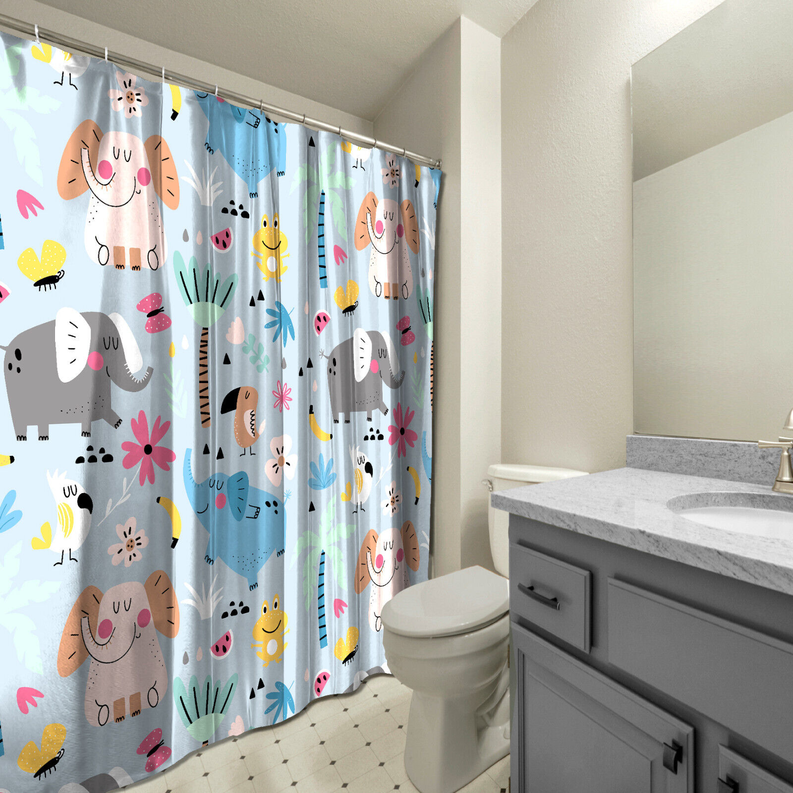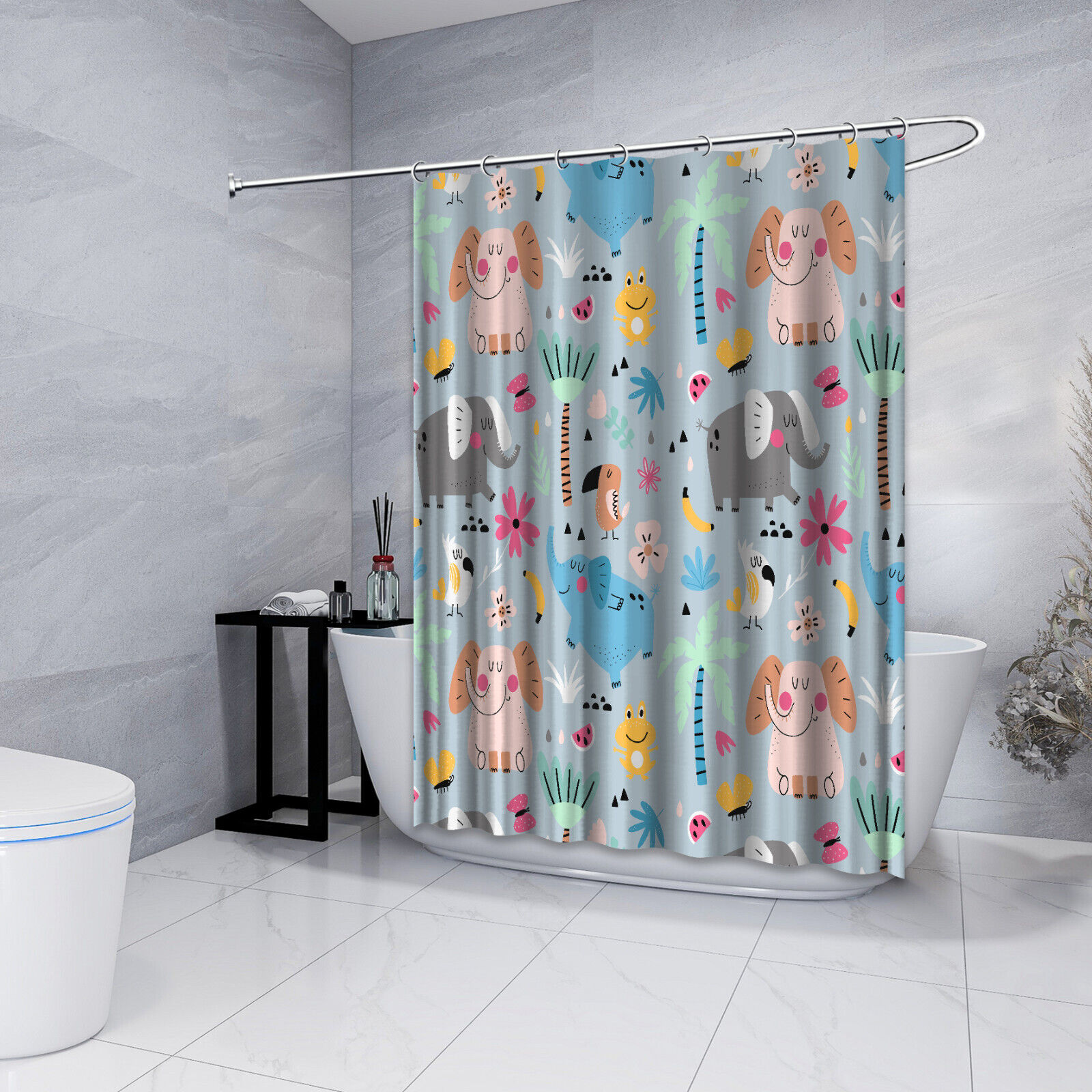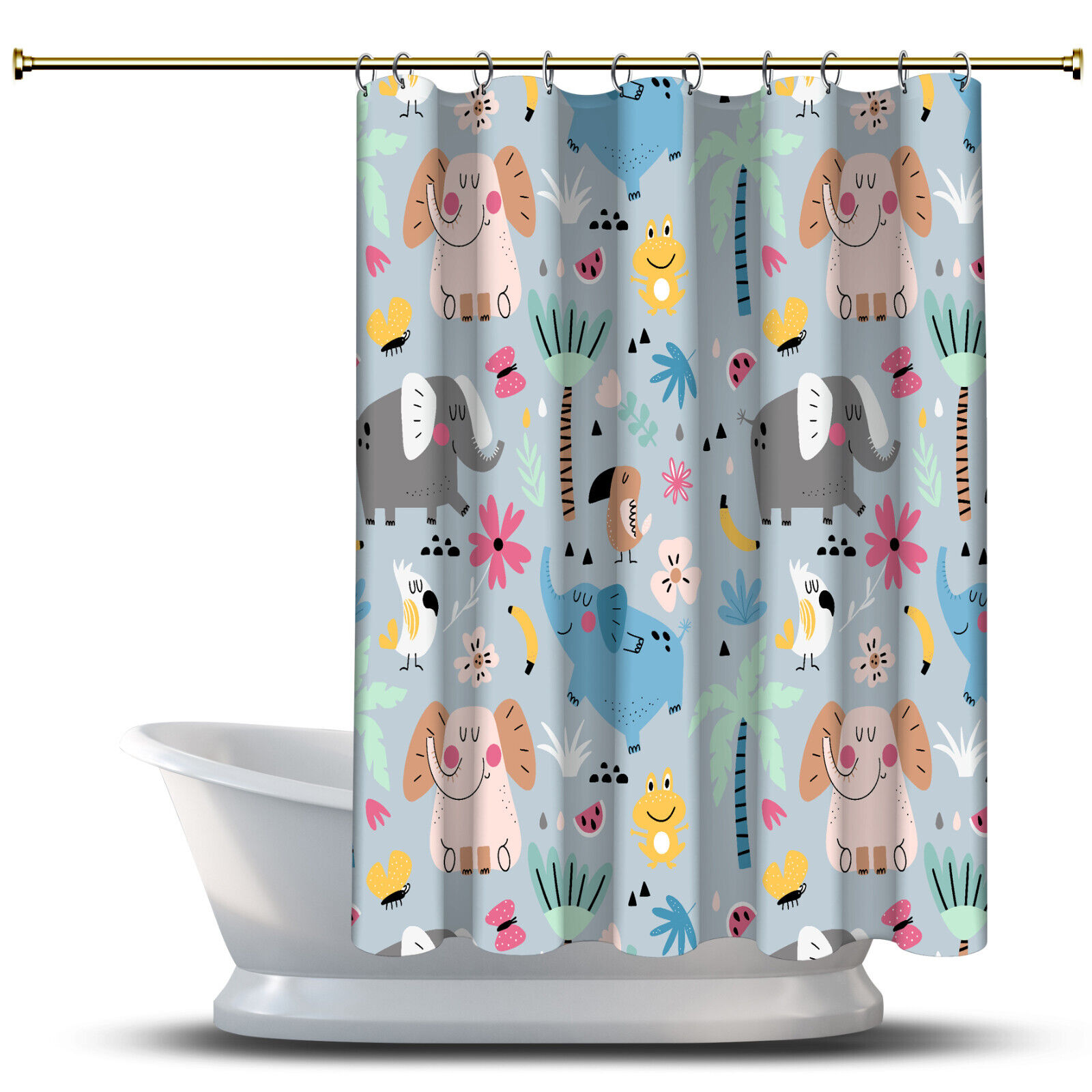 Palm Trees and Elephants Waterproof Fabric Shower Curtain for Bathroom – Bathroom Decor