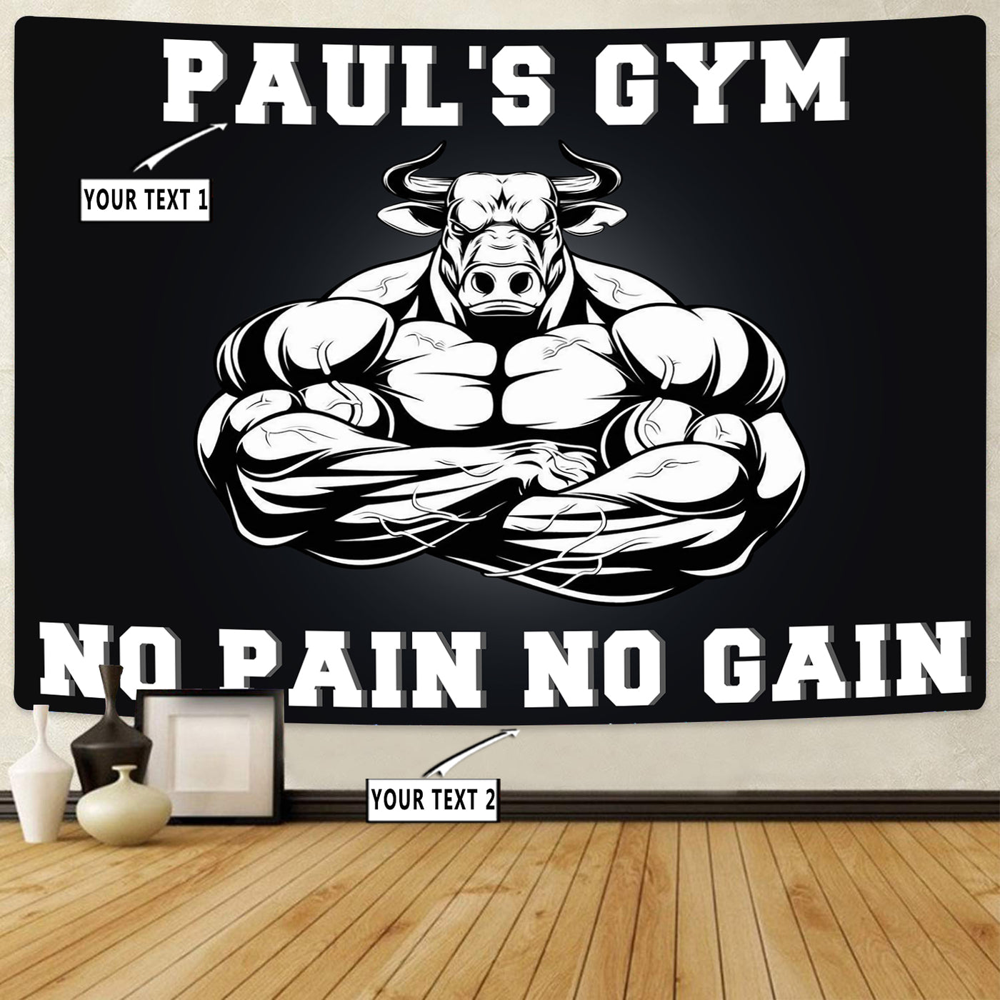 Personalised Gym Banner Flag Tapestry Home Gym Motivational, Decor Bodybuilding