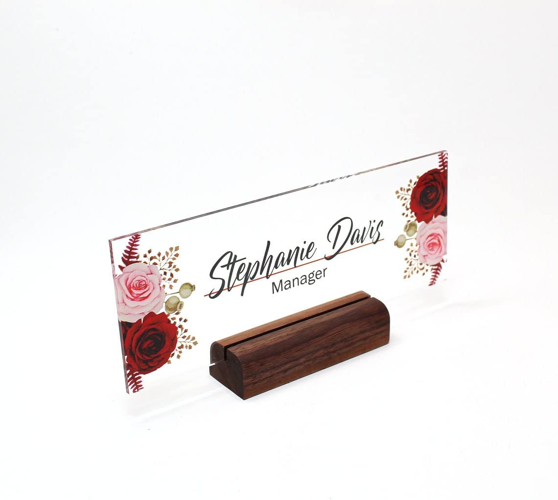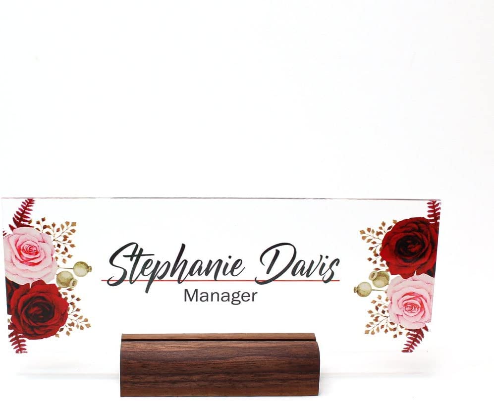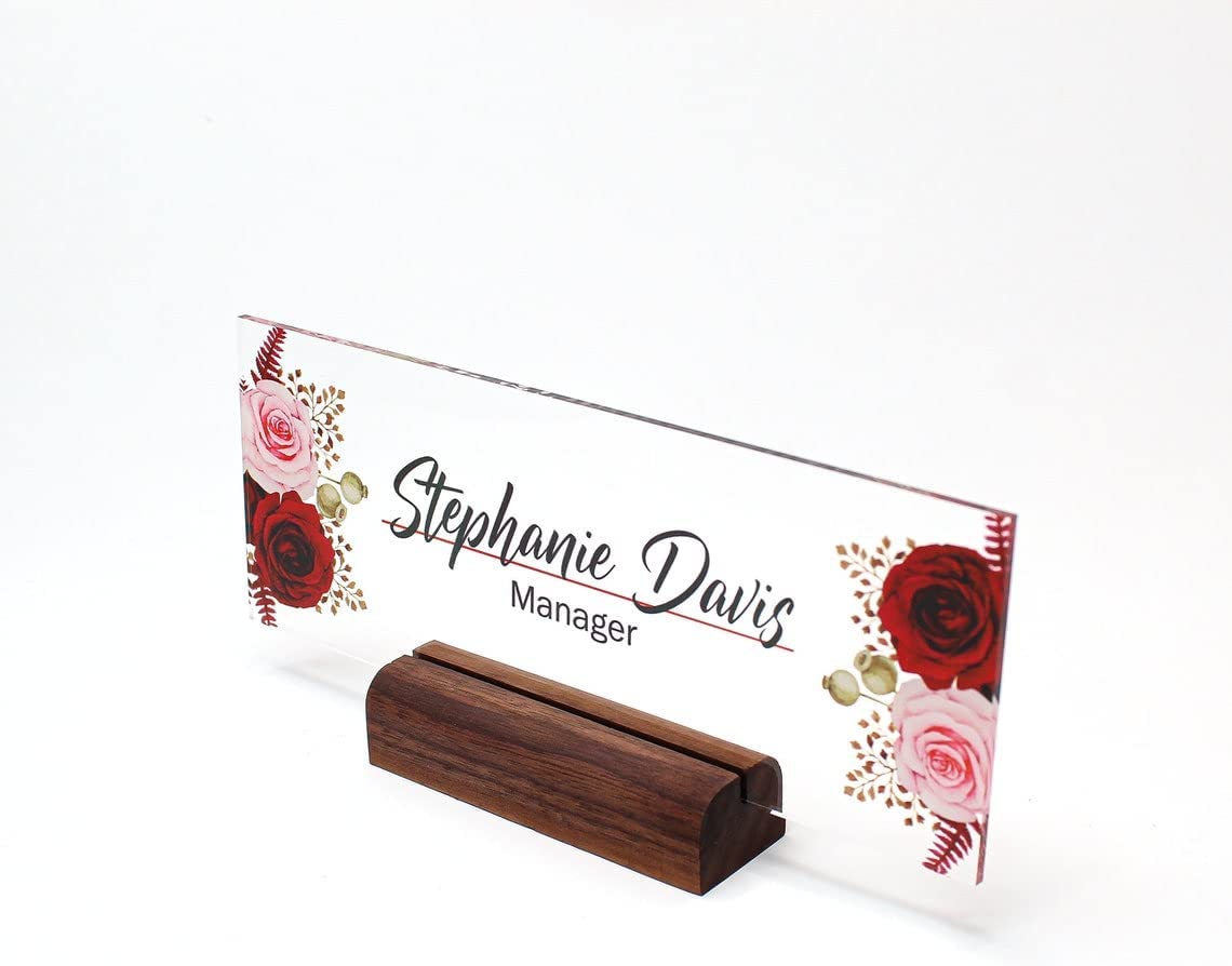 Personalized Acrylic Name Plate For Desk With Rose