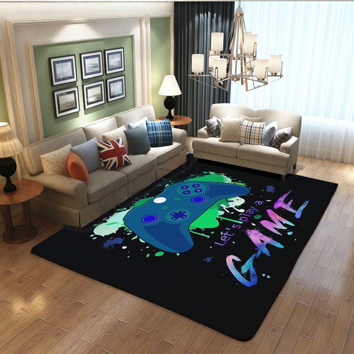 Personalized Anime Game Gamepad Black Area Rug for Bedroom and Living Room Decor
