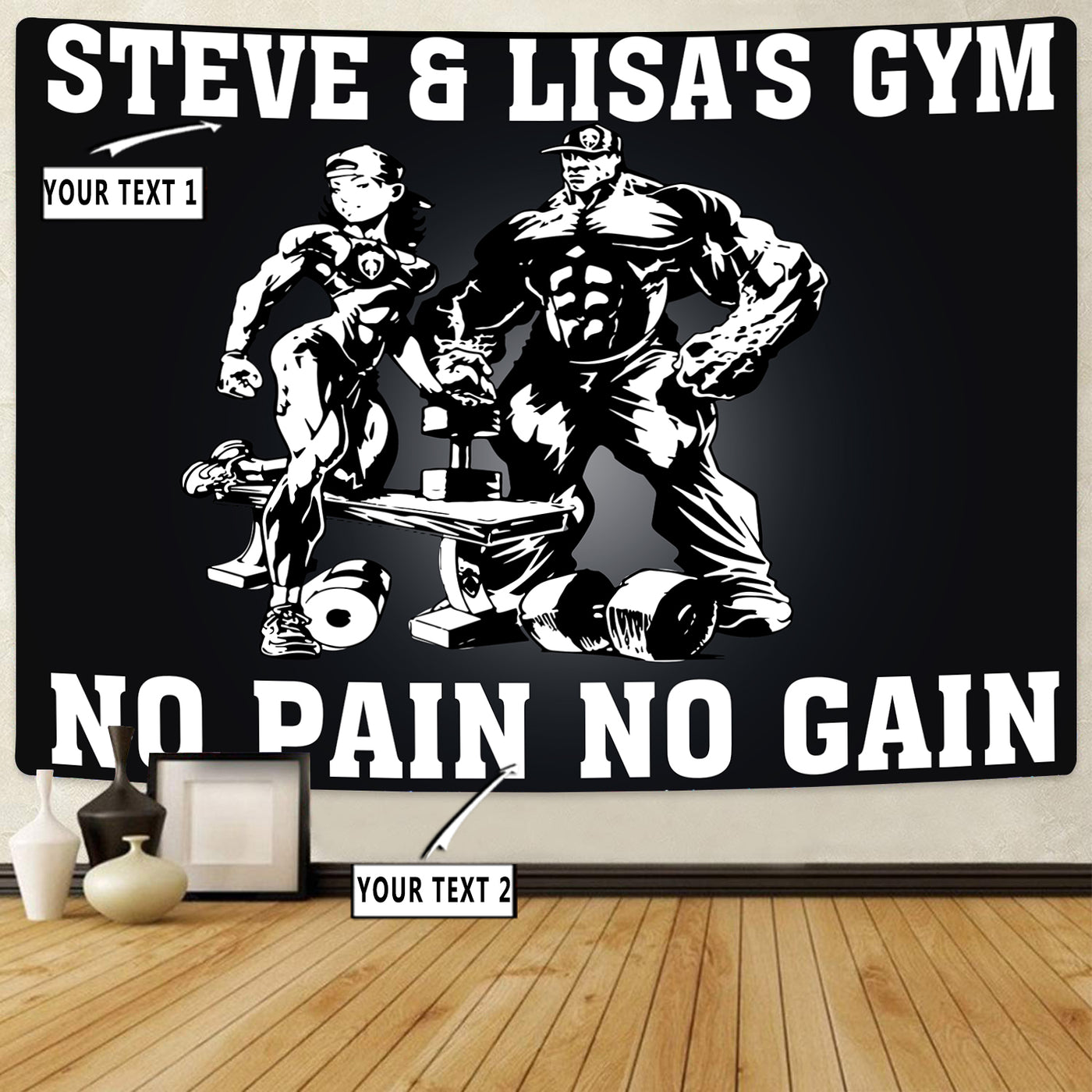 Personalized Bodybuilding Banner Flag Tapestry Home Gym Decor Beauty And The Beast