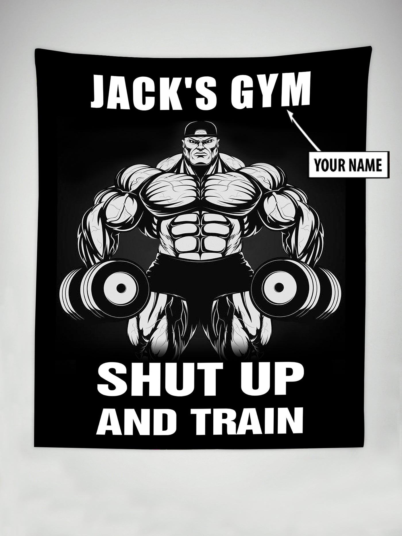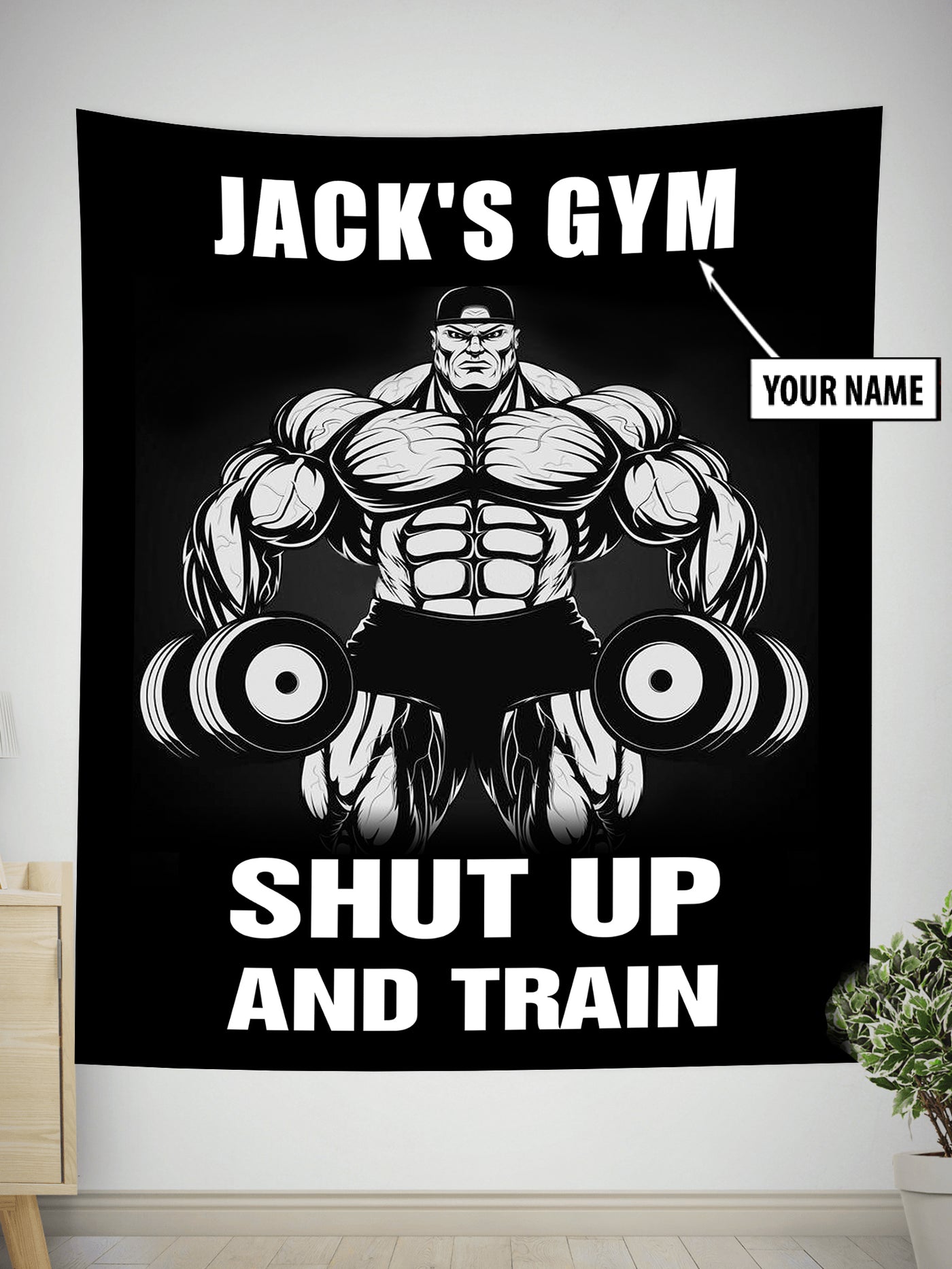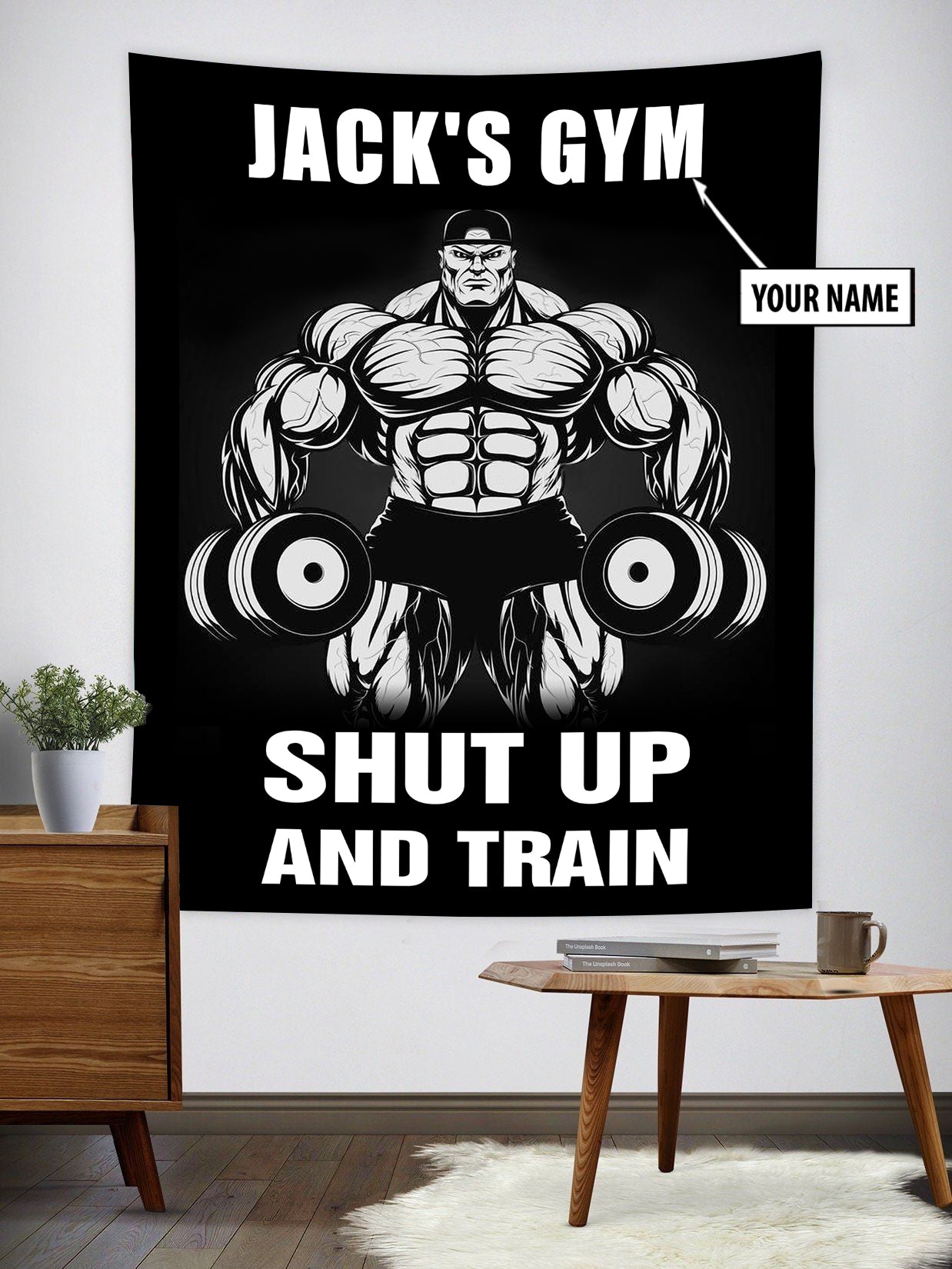 Personalized Bodybuilding Banner Flag Tapestry Home Gym Decor Shut Up And Train