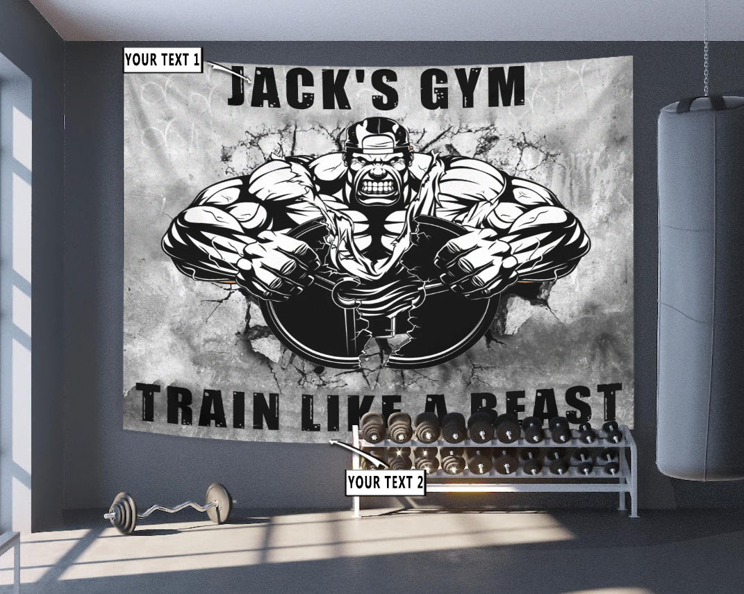 Personalized Bodybuilding Home Gym Decor Muscle Man Banner Flag Tapestry