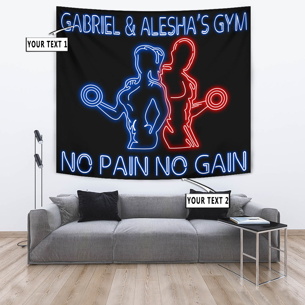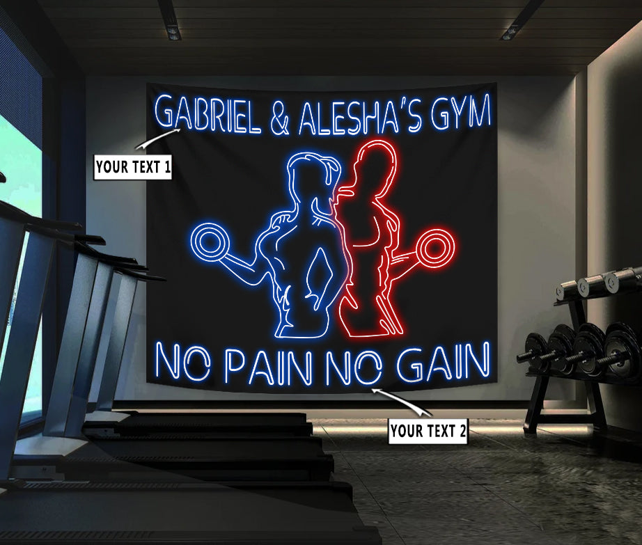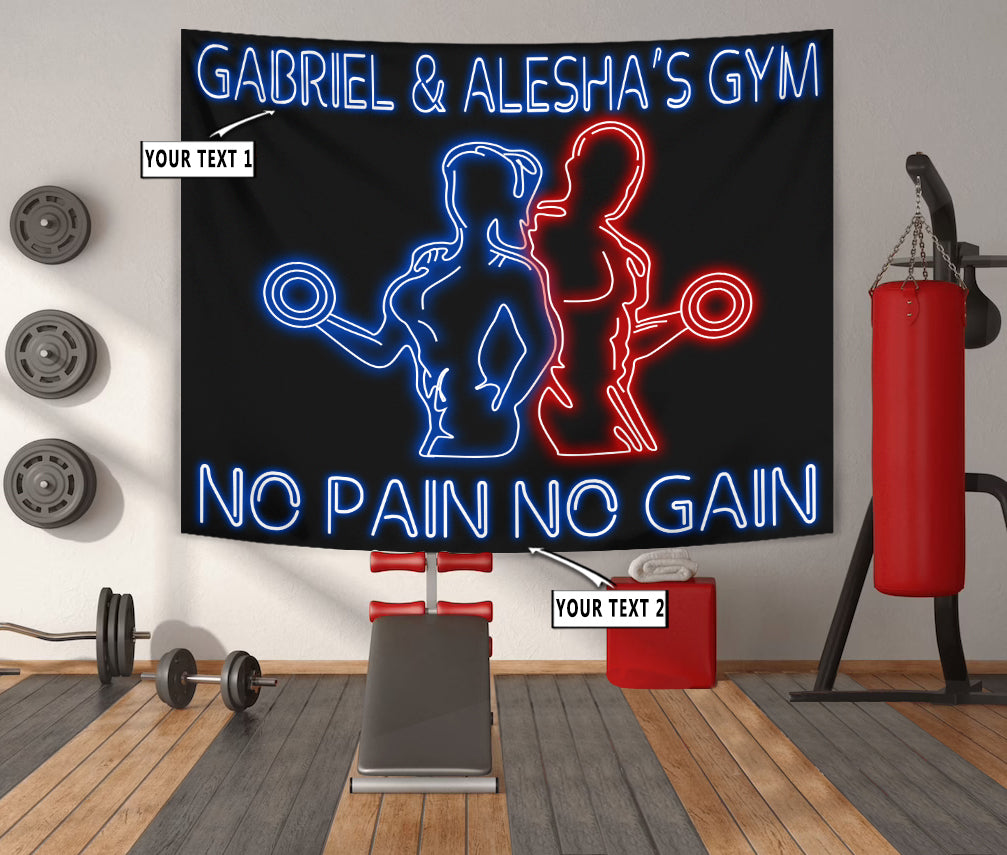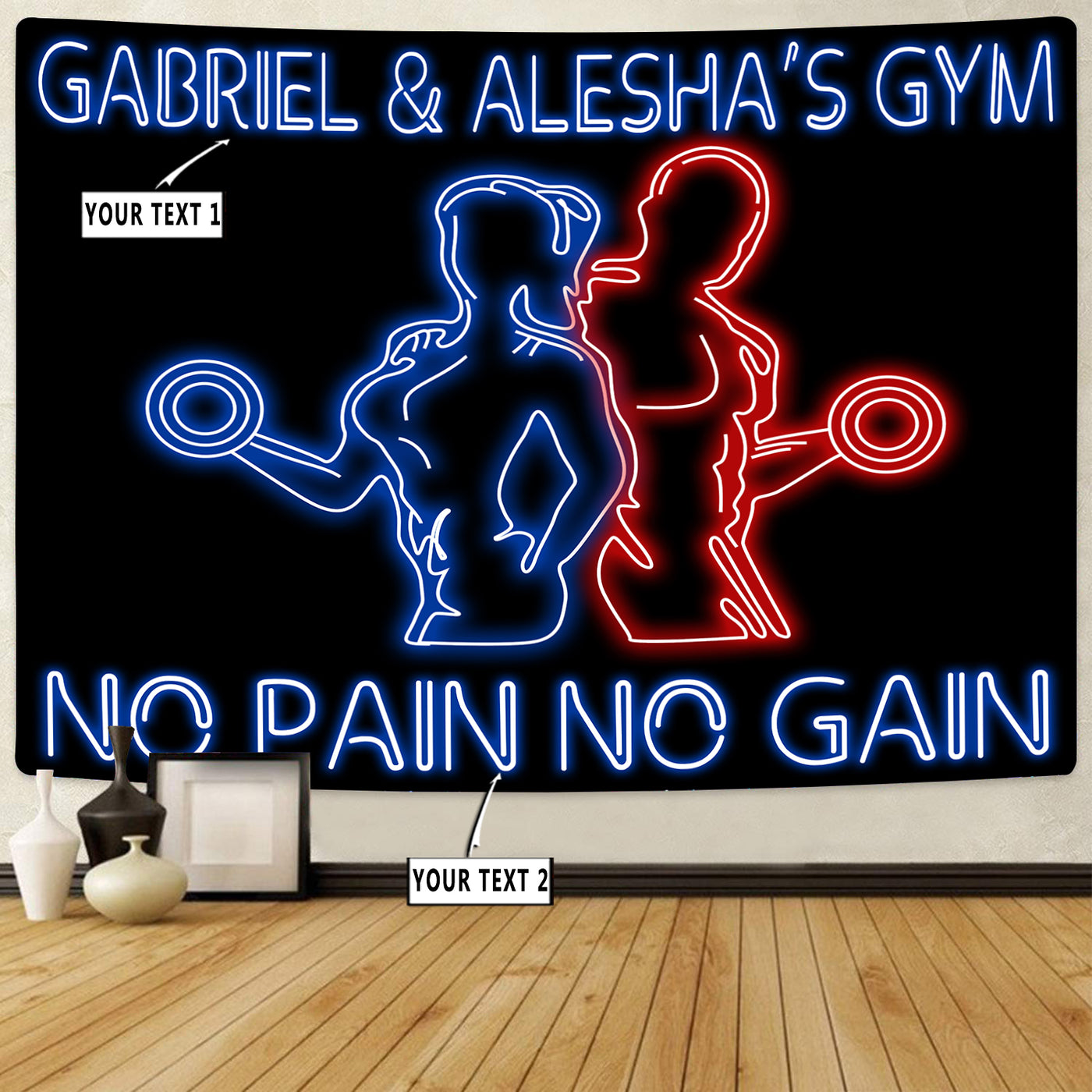 Personalized Couple Home Gym Decor Neon Effect Banner Flag Tapestry