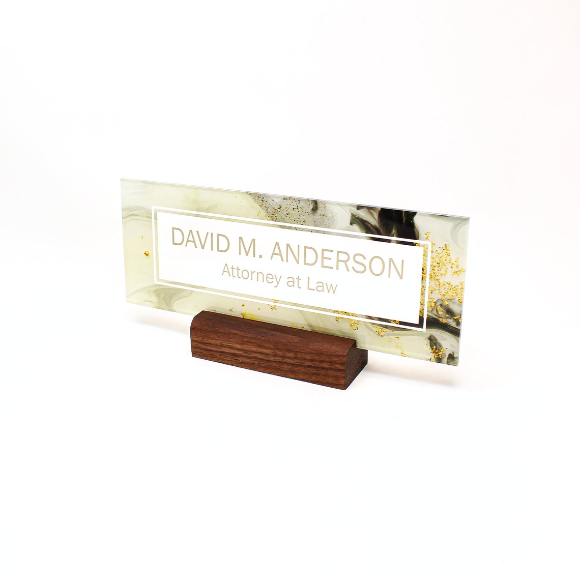 Personalized Desk Name Plate Custom Office Decor Nameplate Gold Marble Sign Gift Women Boss Colleagues