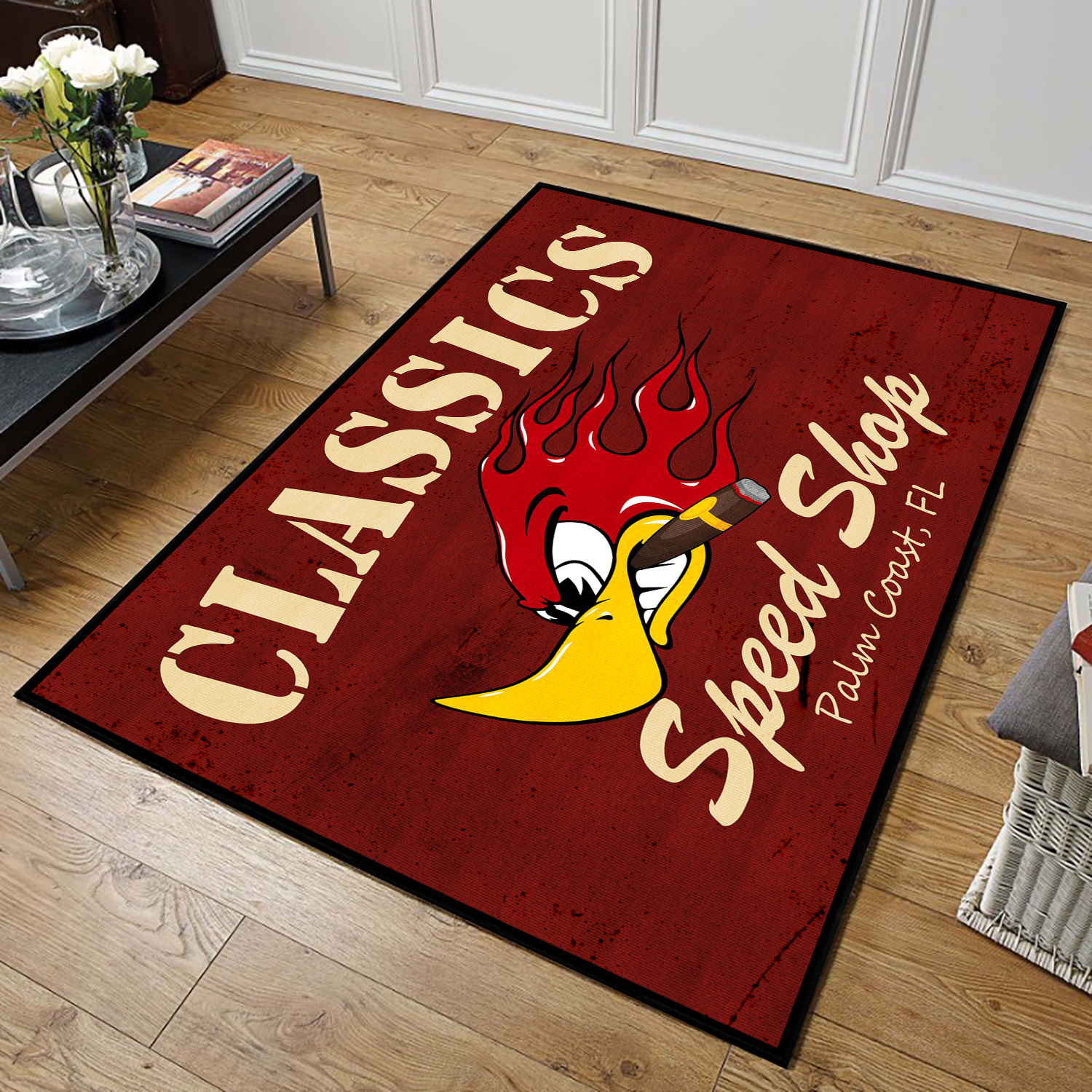 Elevate your home decor with our captivating Mr. Horsepower Rug collection. Featuring the iconic logo, these rugs embody automotive culture and vintage racing nostalgia. Crafted with top-quality materials, this eye-catching rug is a perfect accent for car enthusiasts, garages, and man caves. Channel the spirit of speed and performance with Mr. Horsepower’s charisma and make a statement that impresses auto aficionados and decor enthusiasts alike.
