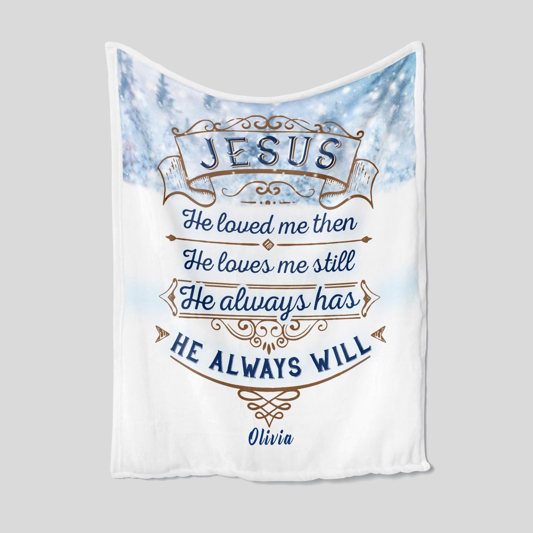 Personalized Faith Quilt Blanket – Jesus He Loved me Then, He Always Will or Home Decoration
