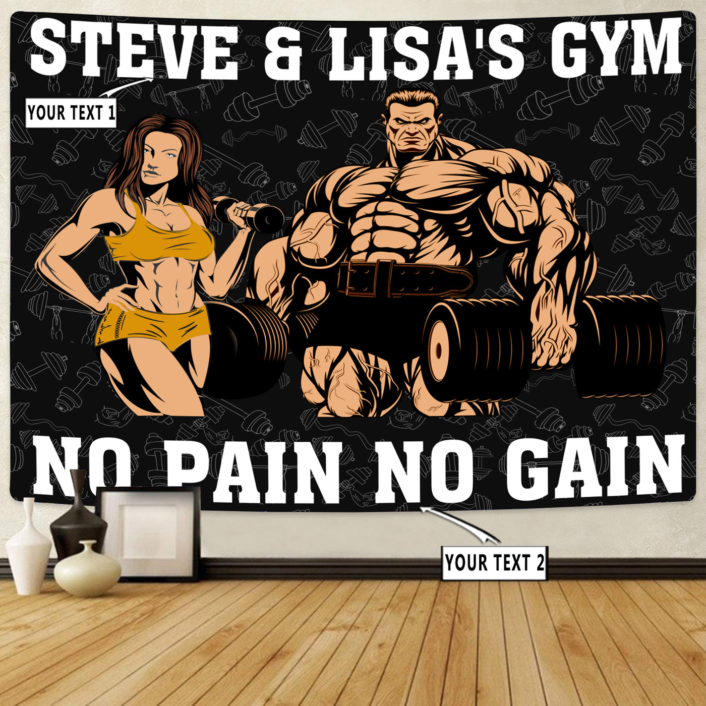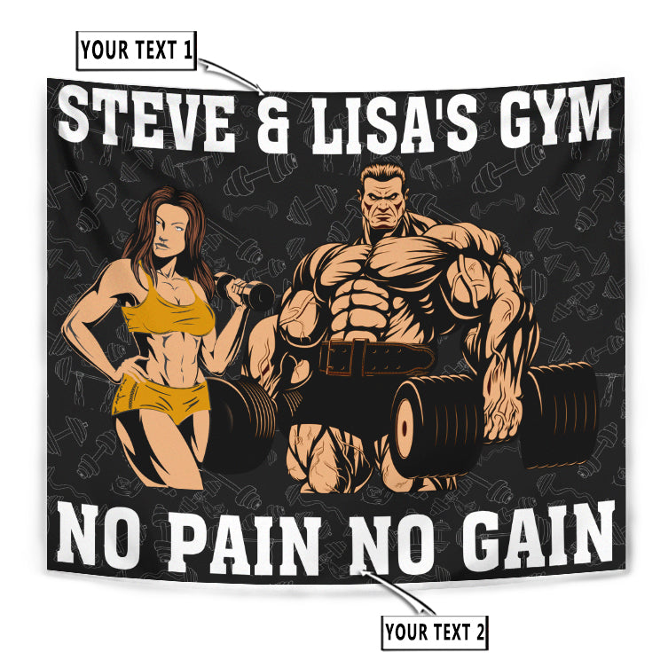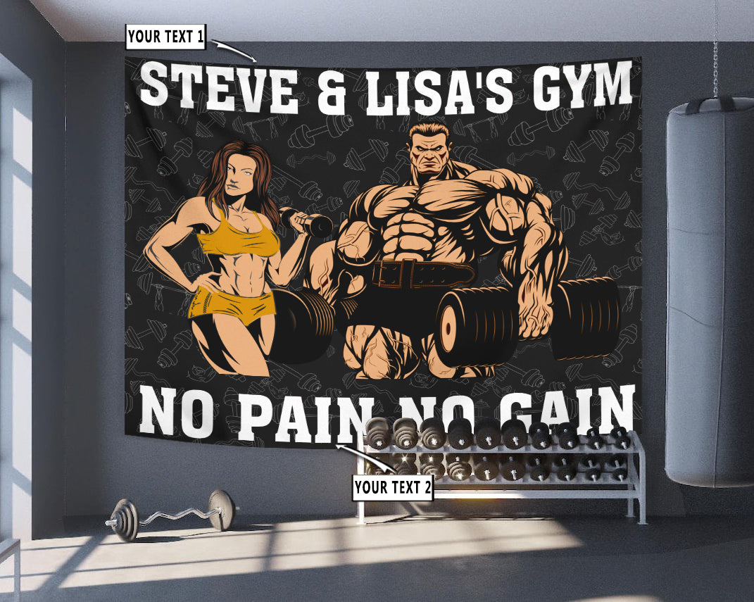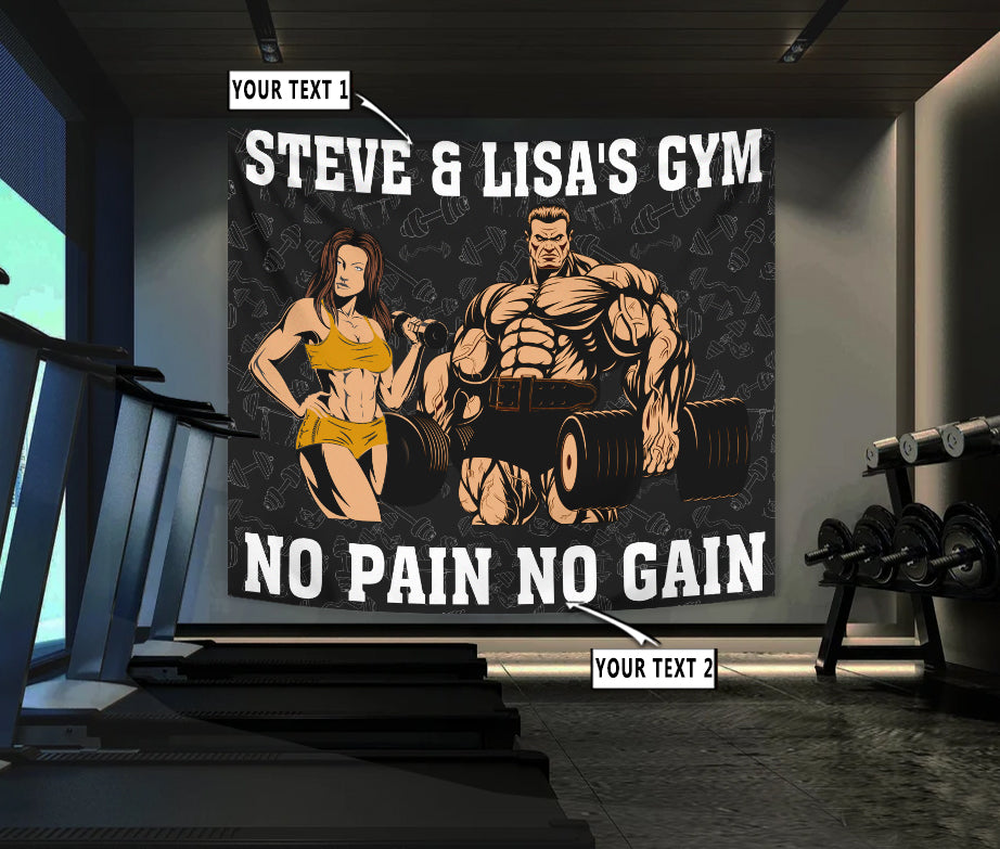 Personalized Fitness Home Gym Decor Couple Banner Flag Tapestry