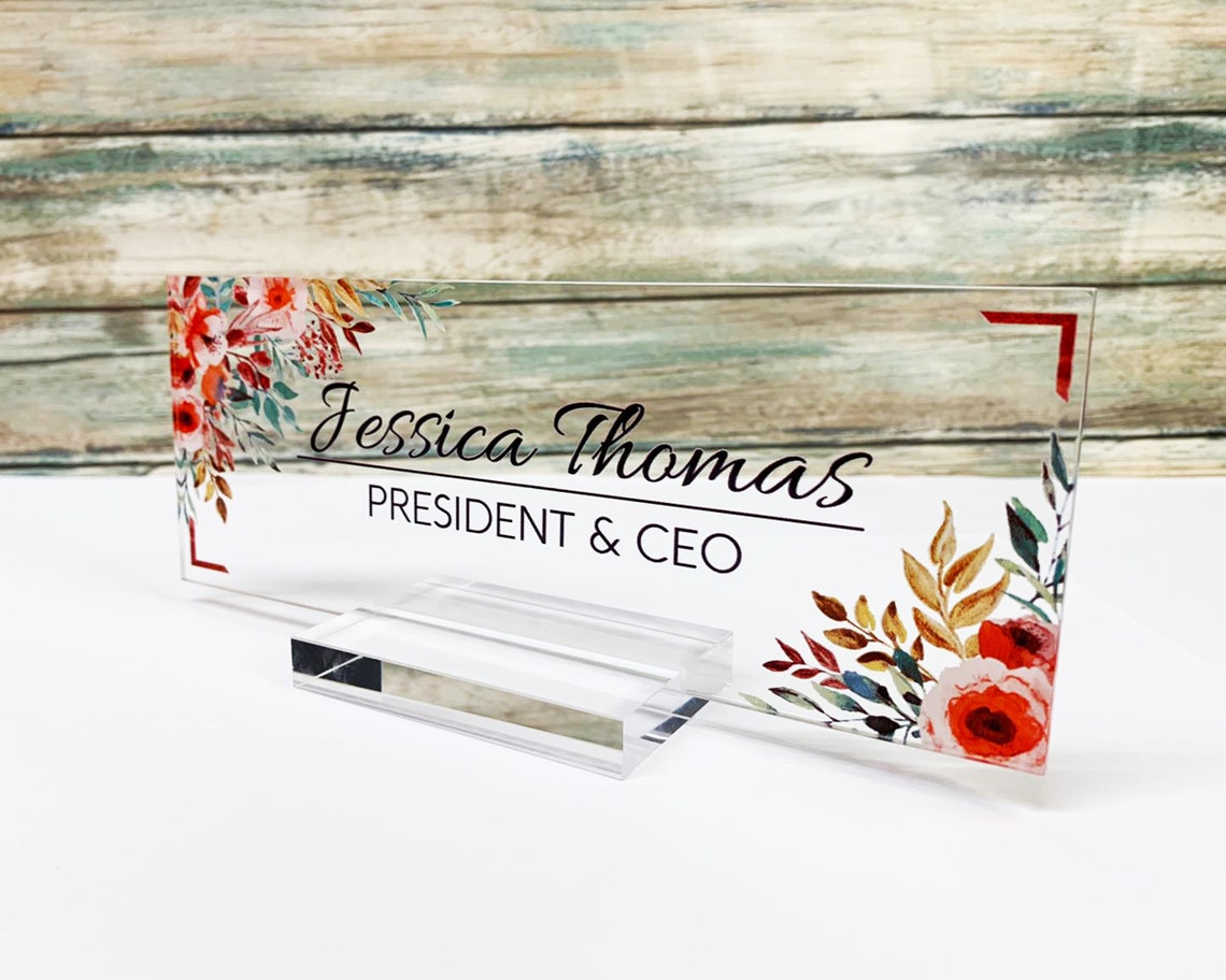 Personalized Floral Name Plate For Desk Acrylic Desk Name Sign Modern Office Business Decor Executive For Boss Co-Working Tearcher And Friends