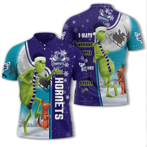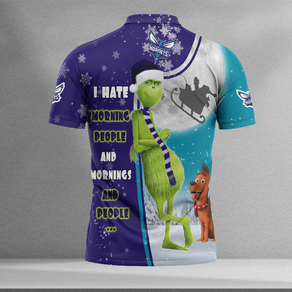 Personalized Funny Christmas The Grinch Charlotte Hornets NBA I Hate Morning People Shirt Gifts Unisex 3D Polo