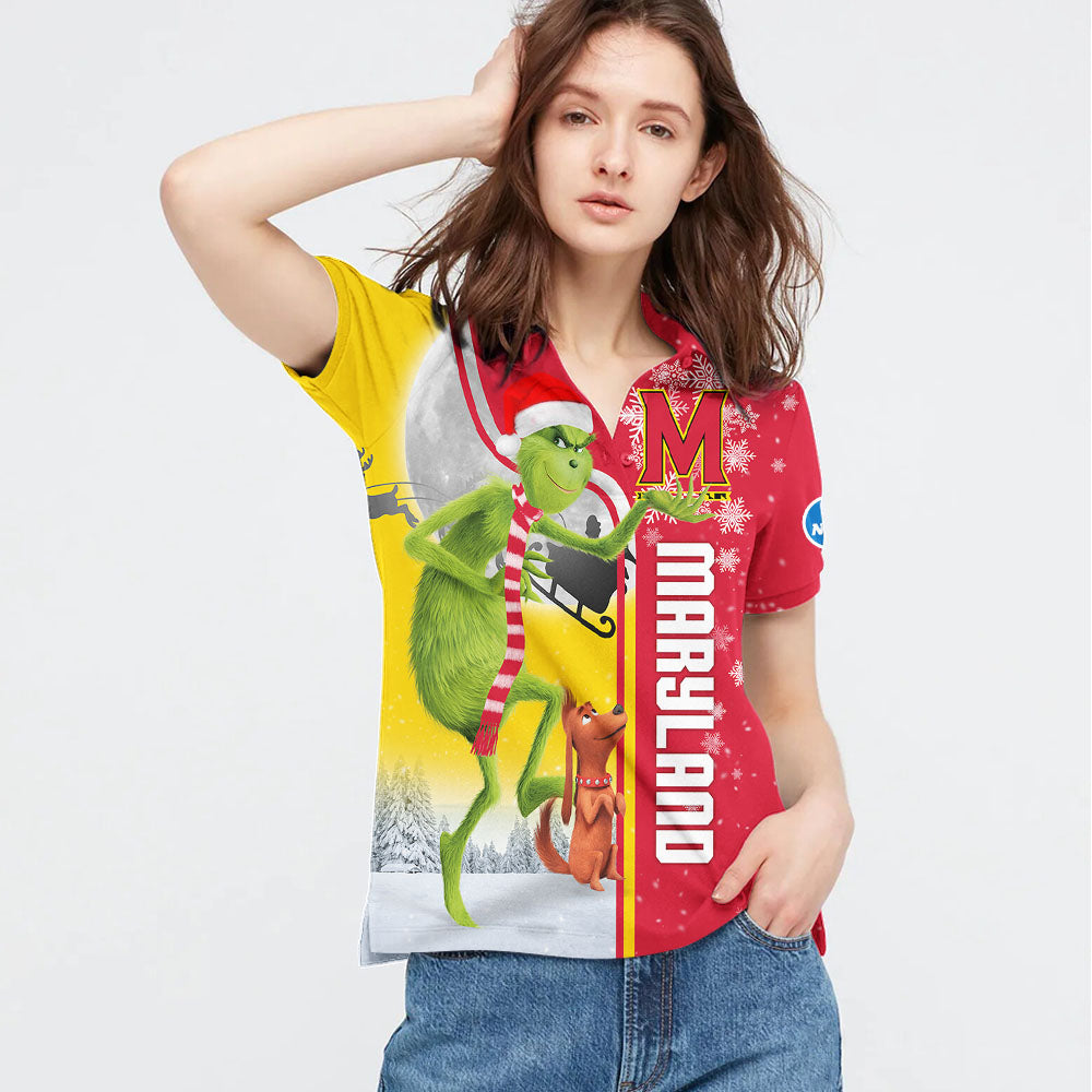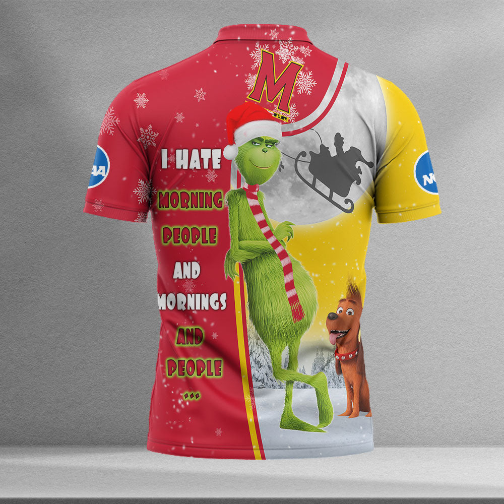 Personalized Funny Christmas The Grinch Maryland Terrapins NCAA I Hate Morning People Shirt Gifts Unisex 3D Polo