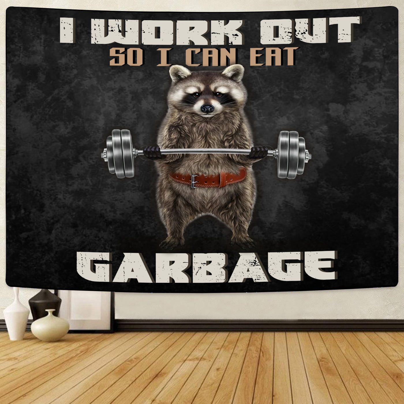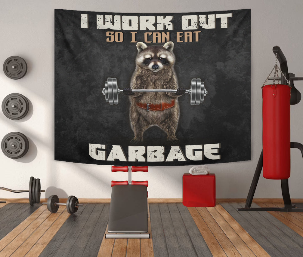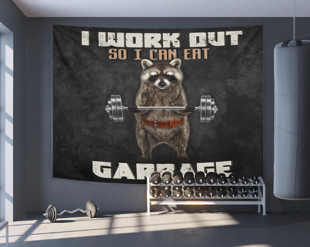Personalized Funny Gym Flags Banner Tapestry Raccoon Weightlifting
