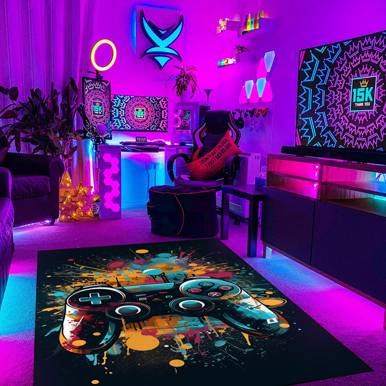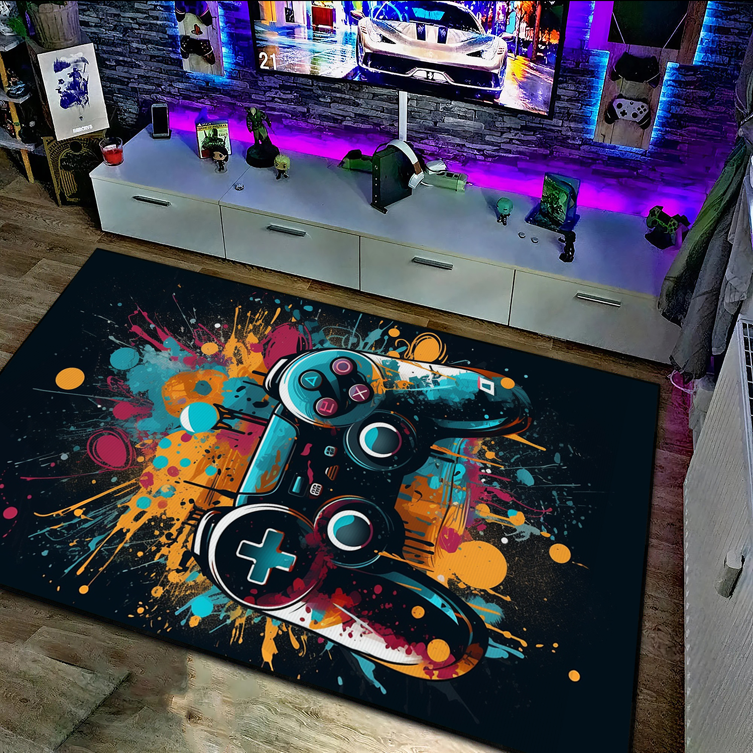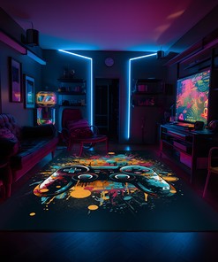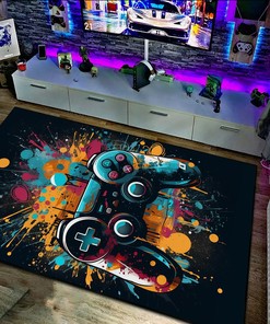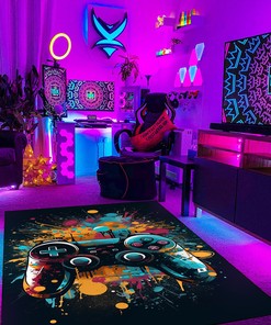 Personalized Game Room Carpet with Shufflezone Game Controller Design for Teen Boys