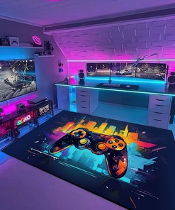 Personalized Gaming Room Area Rug for Teen Boys – Game Controller Rug