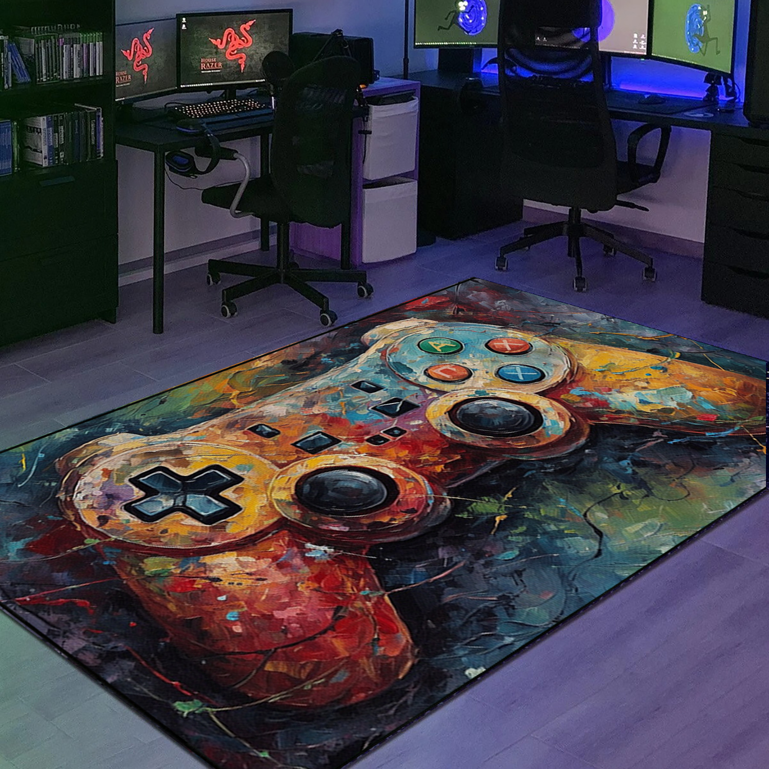 Personalized Gaming Rug for Boys Room – Game Controller Area Rug in Full Sizes – Perfect for Home Decoration M36