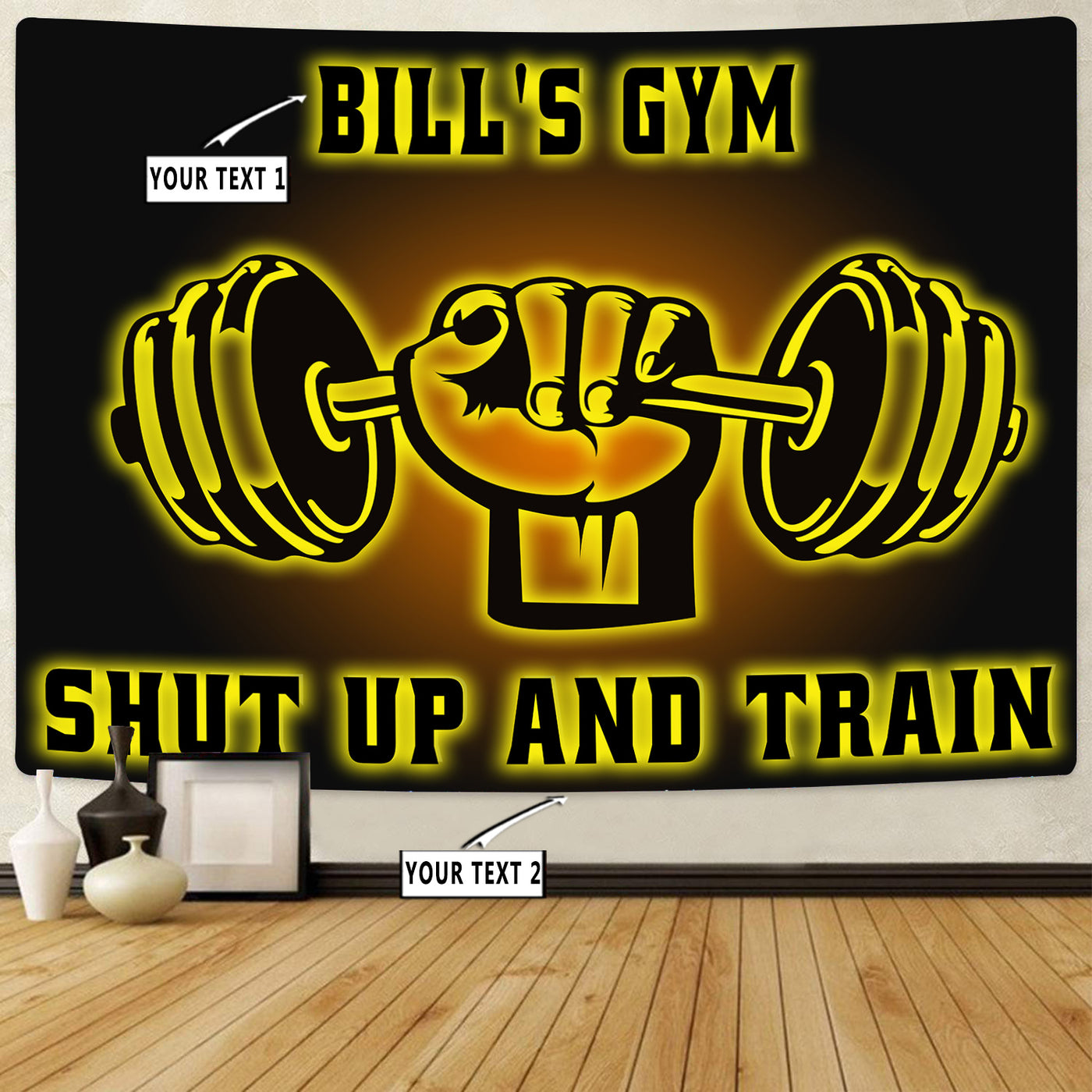 Personalized Gym Banner Flag Tapestry Bodybuilding Home Gym Dumbbell Weightlifting