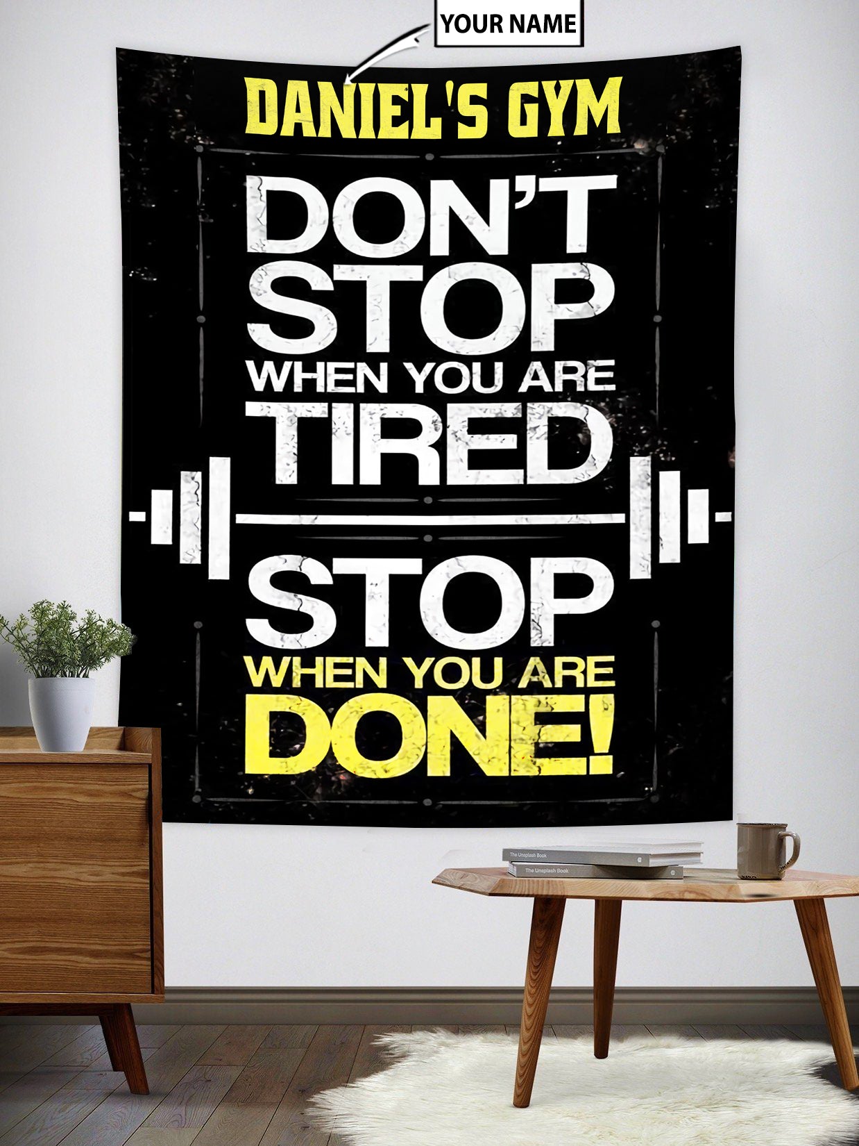 Personalized Home Gym Decor Motivational Quotes Banner Flag Tapestry, Gifts for Fitness Club