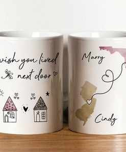 The “I Wish You Lived Next Door Mug” is a perfect gift for friends or family members who live far away, it’s a sentimental way to show them that distance doesn’t change the strength of your relationship. Customizable with states or any text you want, it’s a unique and personal gift that will remind them of your friendship every time they use it. It’s also a great way to let them know how much you miss them and how much you wish they lived closer.