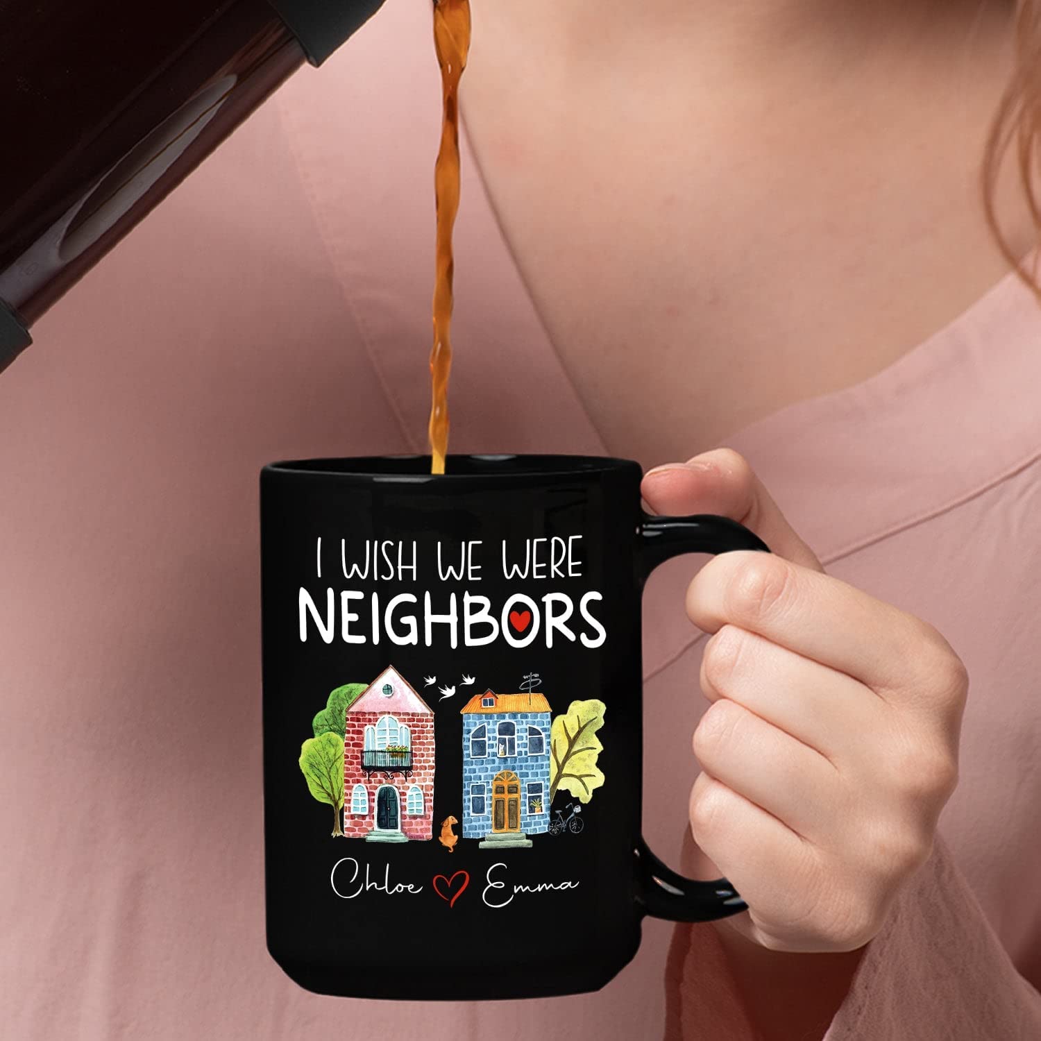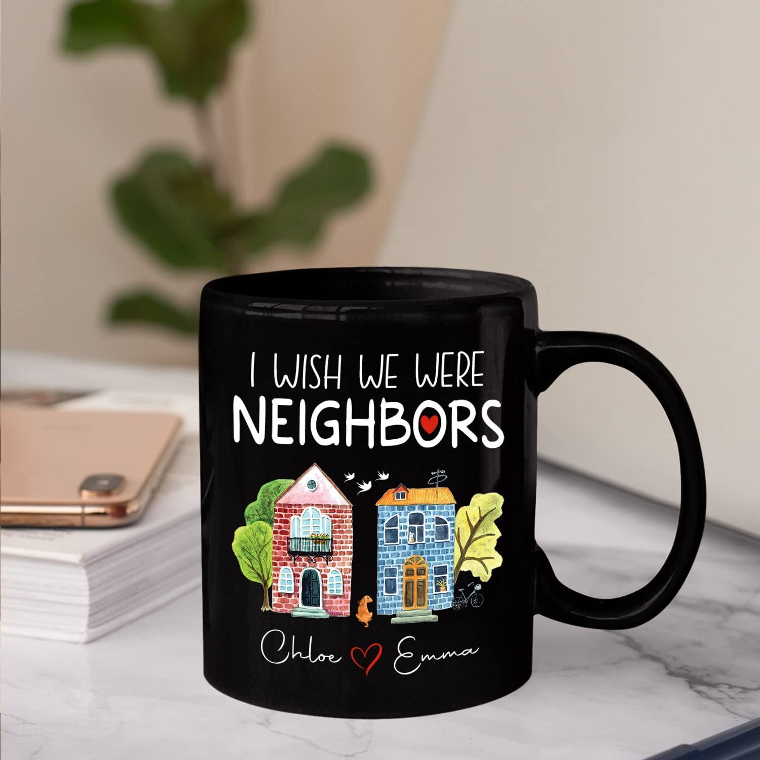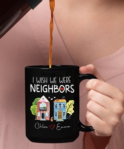 Personalized Long Distance Friendship Black Coffee Mug – I Wish We Were Neighbors for Friends and Besties