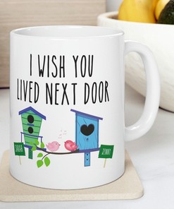 The “I Wish You Lived Next Door Mug” is a perfect gift for friends or family members who live far away, it’s a sentimental way to show them that distance doesn’t change the strength of your relationship. Customizable with states or any text you want, it’s a unique and personal gift that will remind them of your friendship every time they use it. It’s also a great way to let them know how much you miss them and how much you wish they lived closer.