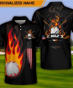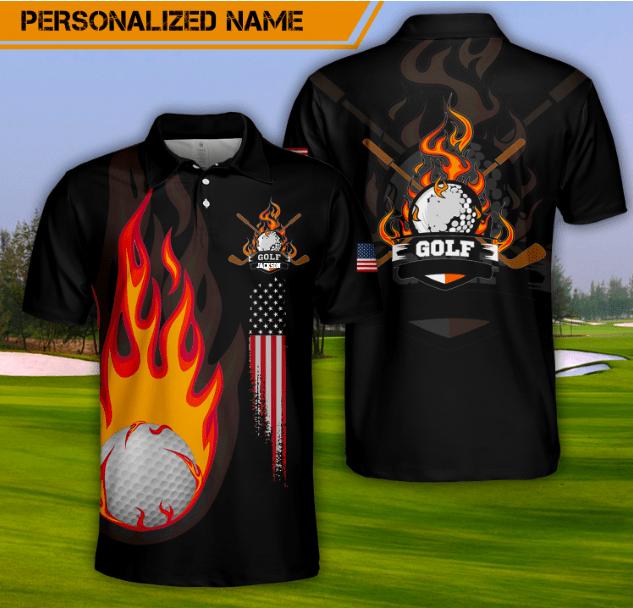 Personalized Name Flaming Golf Black Polo Shirt