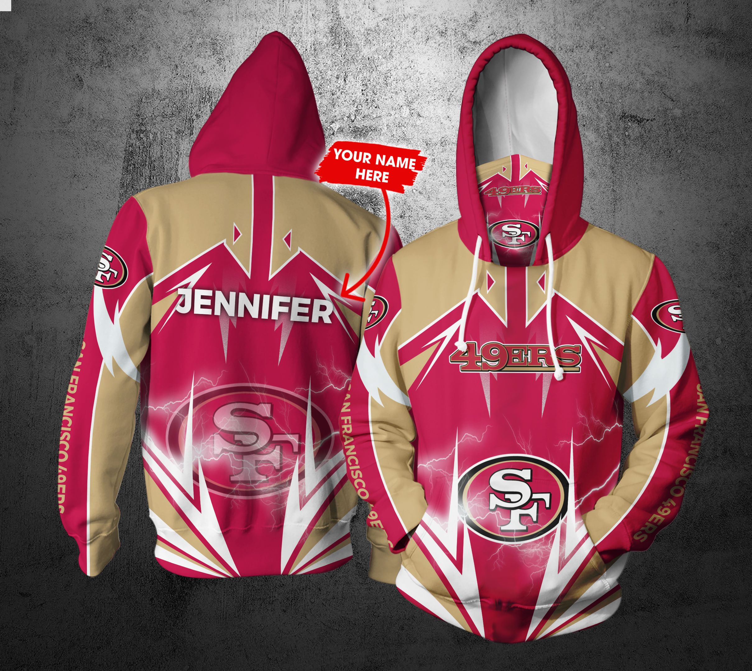 Personalized Nfl Gaiter Hoodie San Francisco 49Ers Gaiter Hoodie Lightning Custom Name 3D All Over Printed Hoodie
