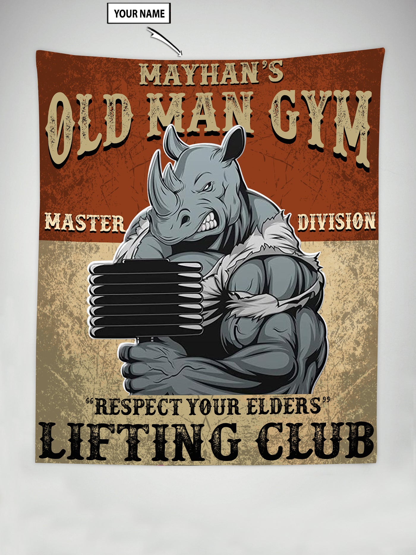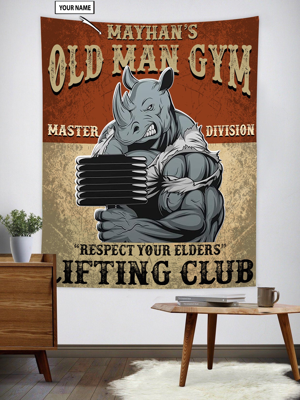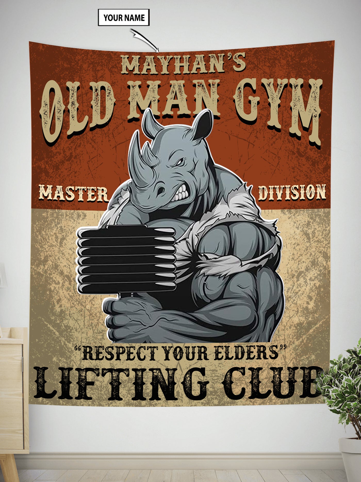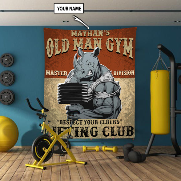 Personalized Old Man Home Gym Decor Wall Banner Flag Tapestry