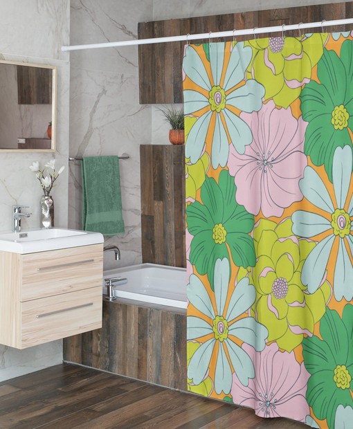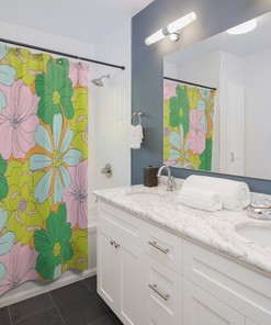 Personalized Retro Tropical Flowers Shower Curtain For 60’s 70’s Hippie Bathroom Decor
