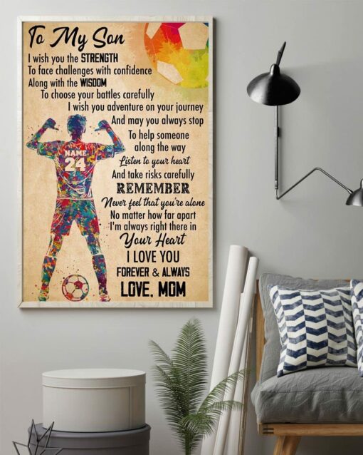 Personalized Soccer Player Watercolor Poster Canvas To My Son Poster Meaning Gifts for Son Boys Sports Lovers