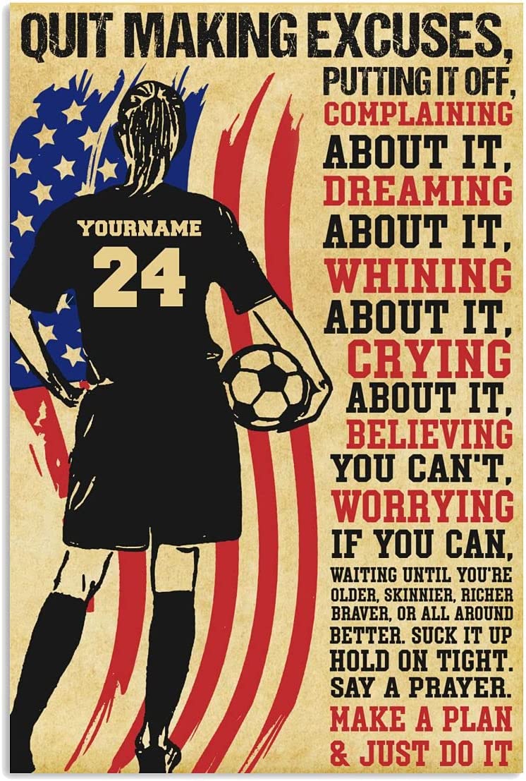 Personalized US Flag Soccer Girl Quit Making Excuses Poster Wall Art Canvas
