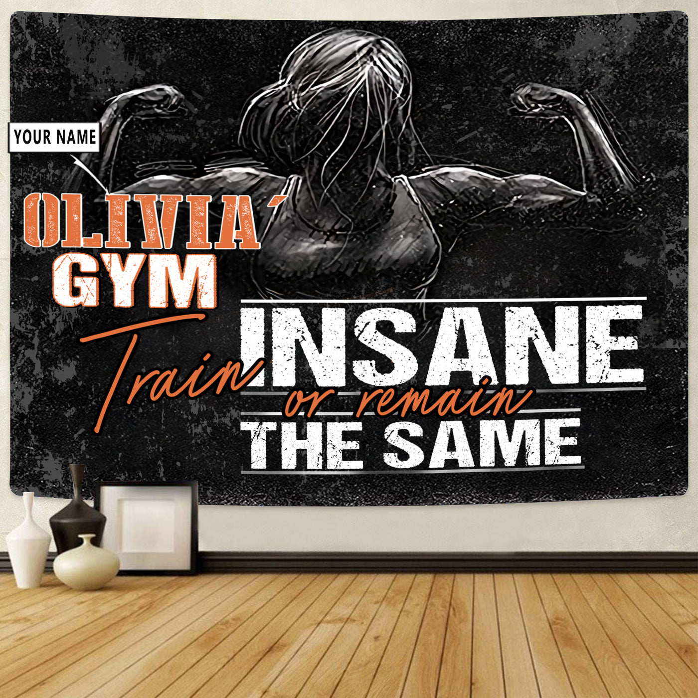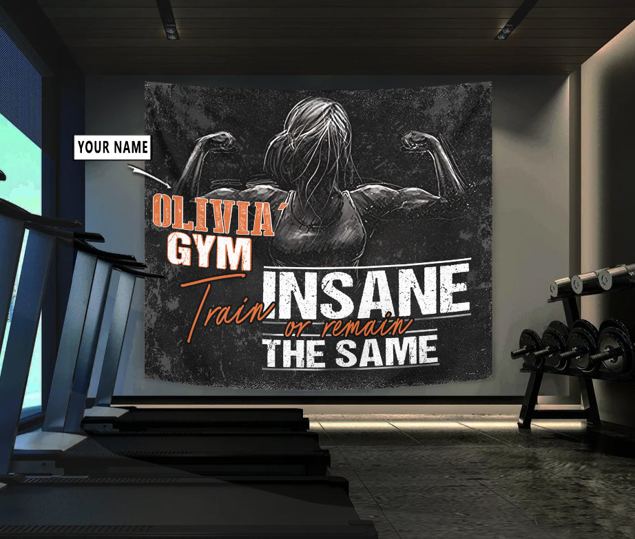 Personalized Women Fitness Banner Flag Tapestry Home Gym Decor Motivational Wall Art
