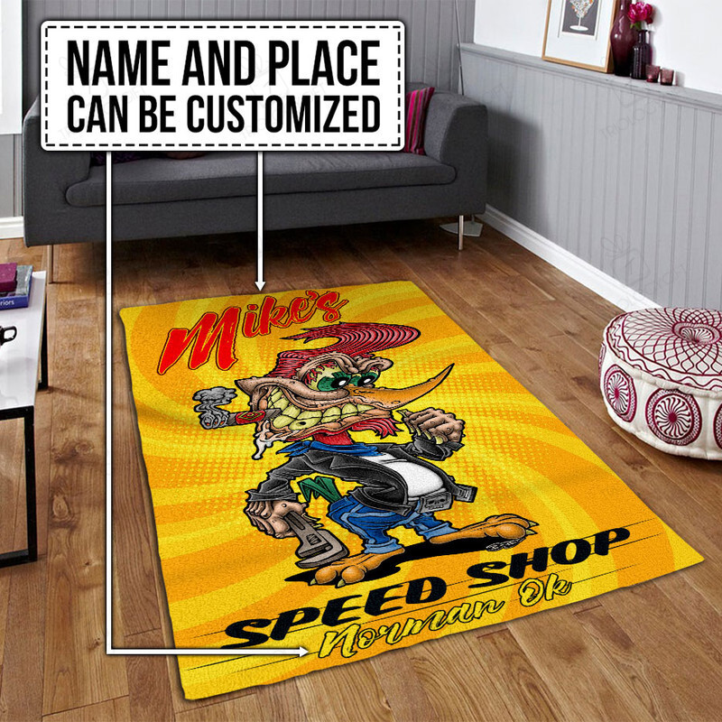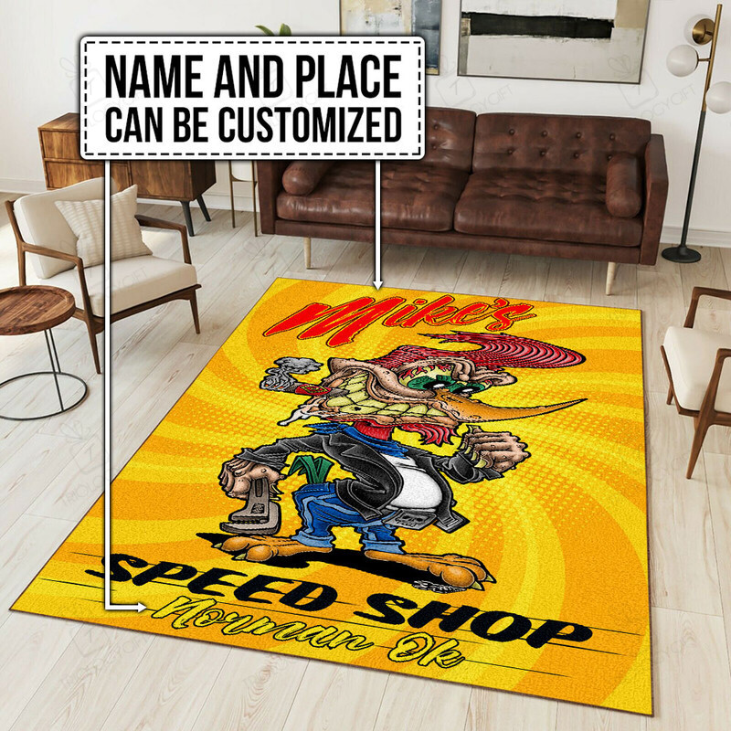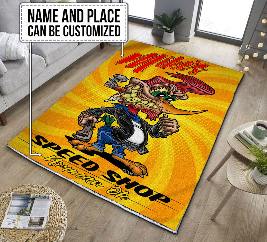 Personalized Woodpecker Hot Rod Rug for Garage
